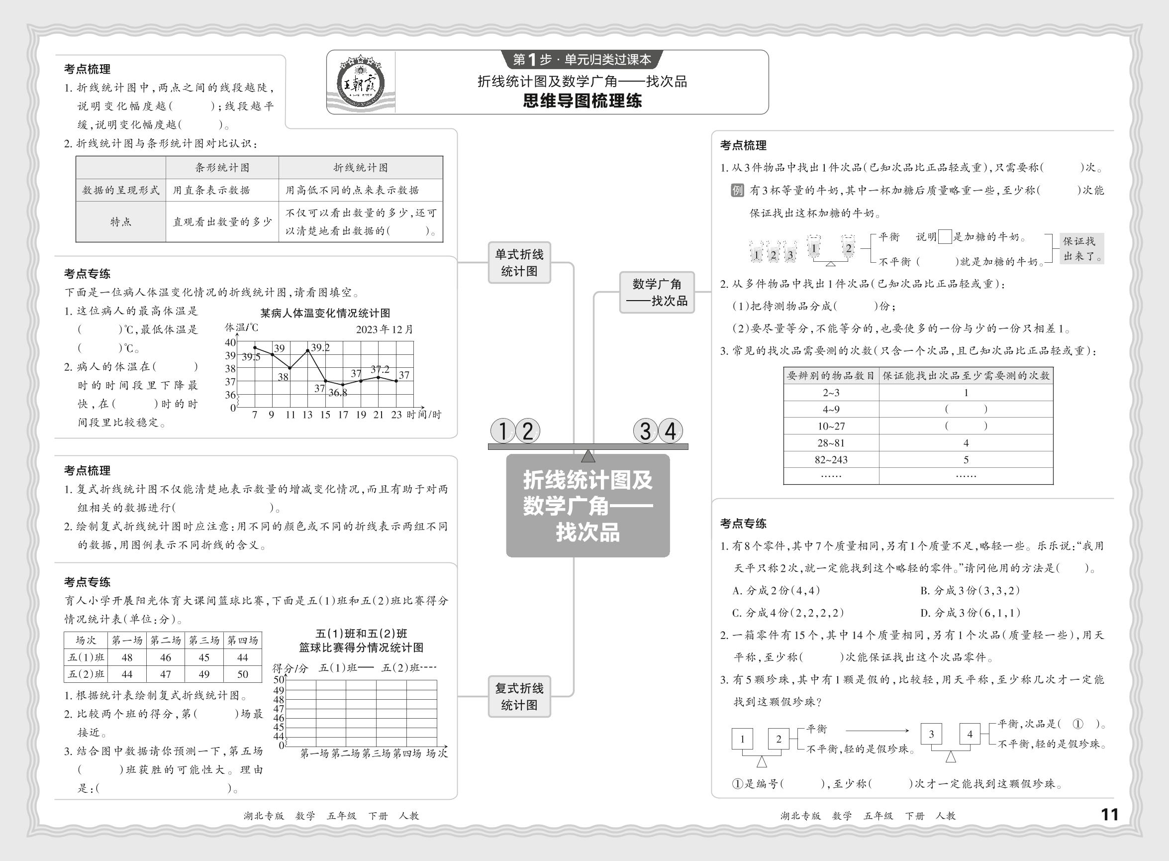 2024春下册五年级数学人教版 期末过课本湖北版·单元归类复习练——折线统计图及数学广角——找次品【6】