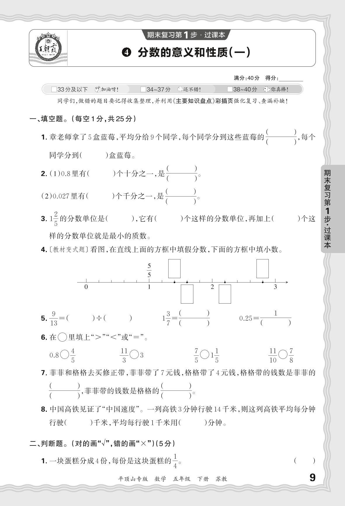 2024春下册五年级数学苏教版 期末过课本平顶山版·分数的意义和性质(一)【4】