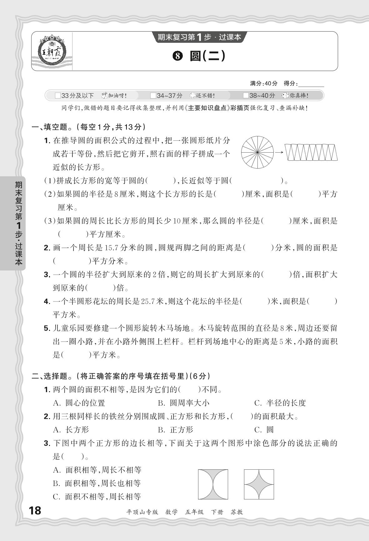 2024春下册五年级数学苏教版 期末过课本平顶山版·圆(二)【8】