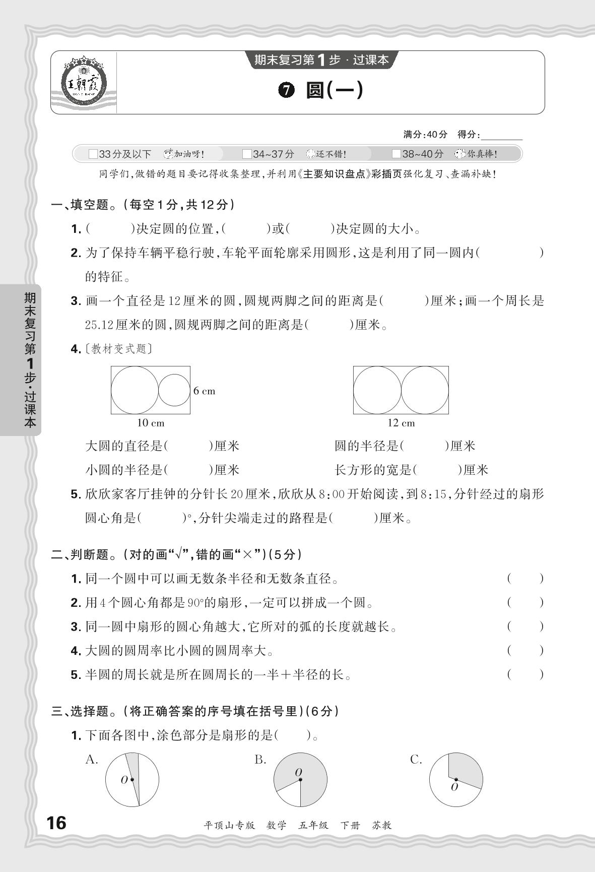 2024春下册五年级数学苏教版 期末过课本平顶山版·圆(一)【7】