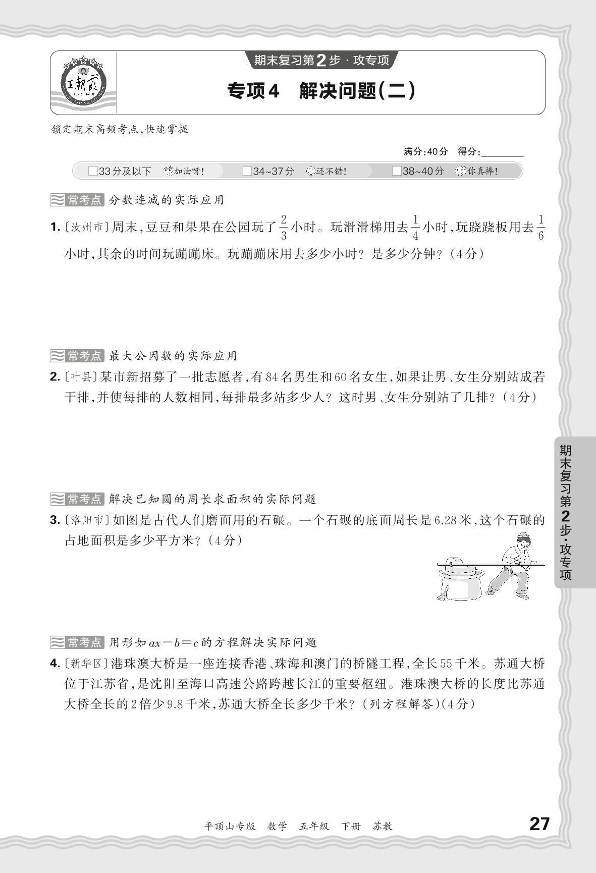 2024春下册五年级数学苏教版 期末专项卷平顶山版·解决问题(二)【4】