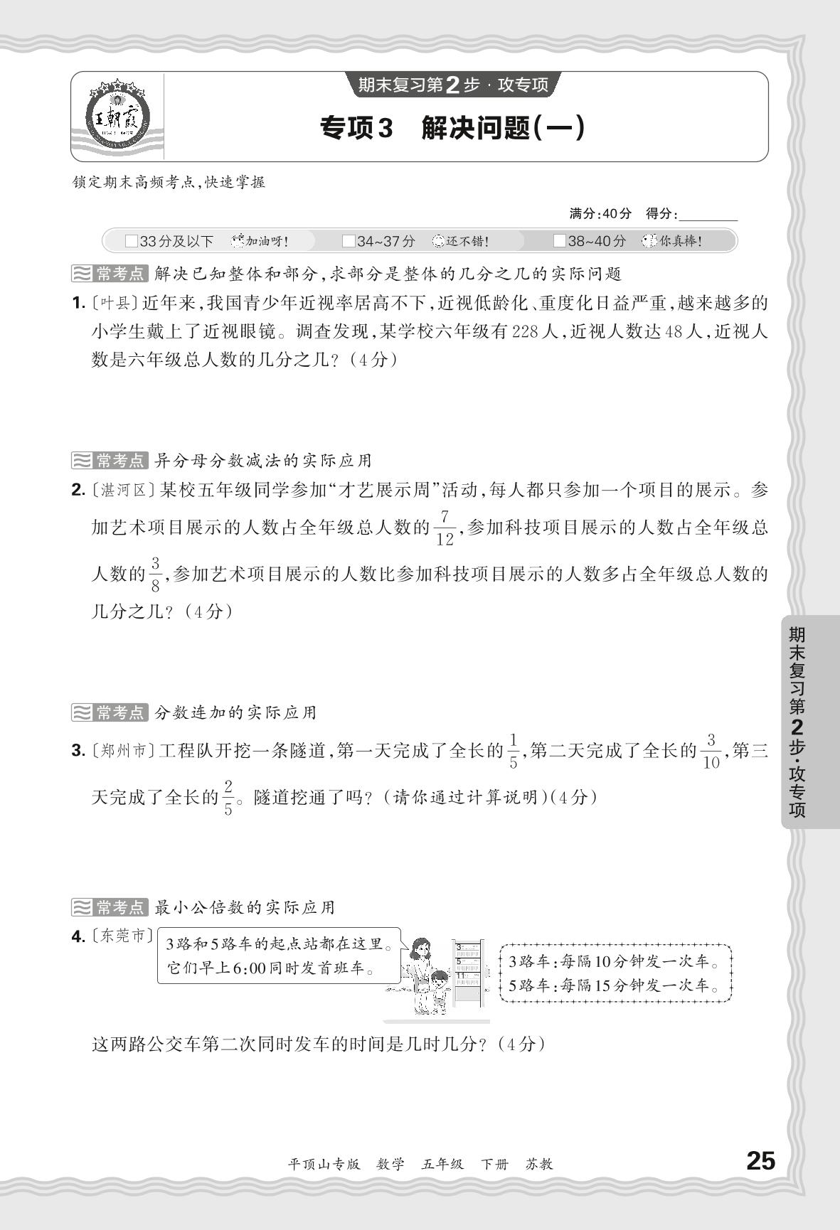 2024春下册五年级数学苏教版 期末专项卷平顶山版·解决问题(一)【3】