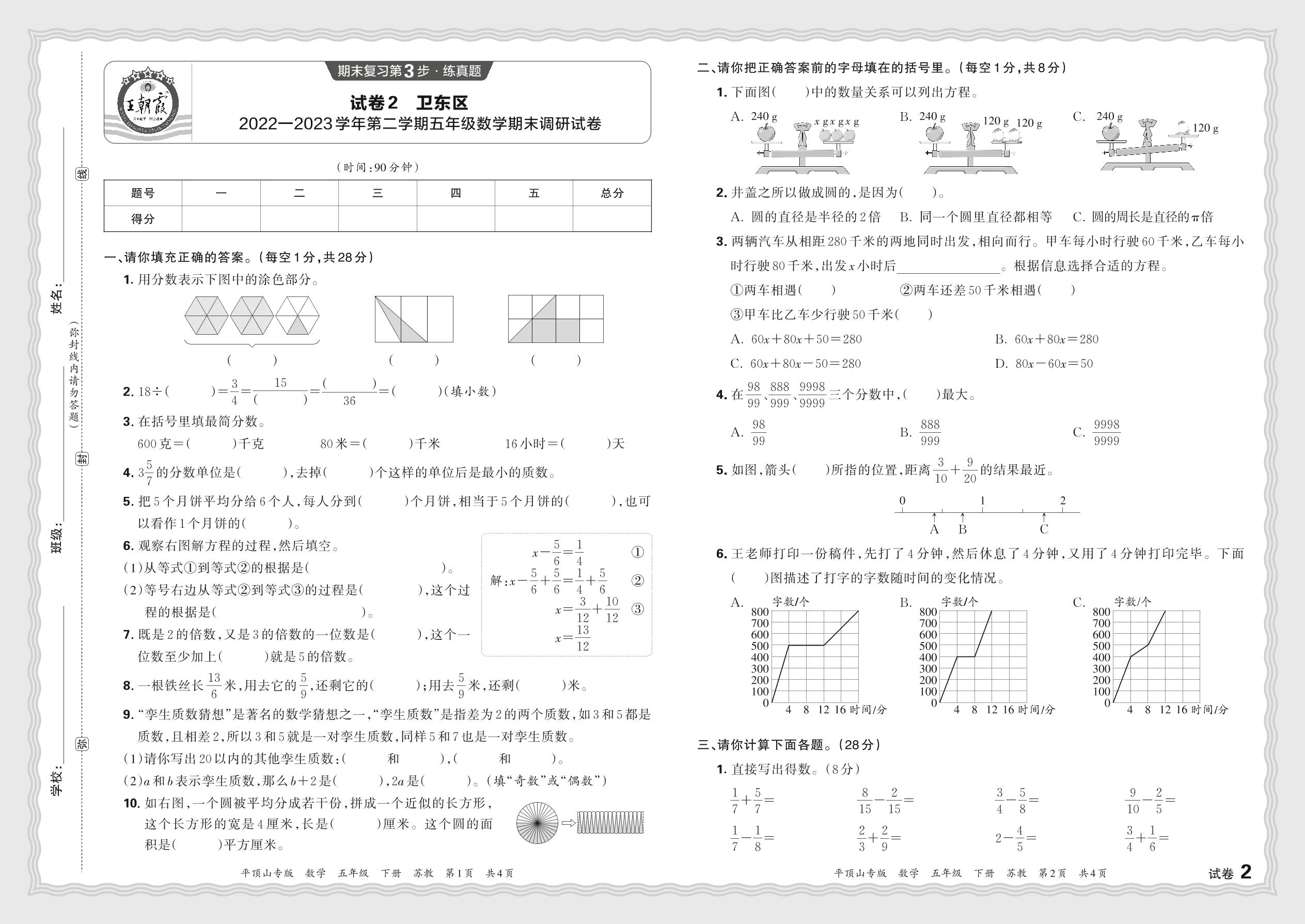 河南省平顶山市卫东区2022-2023学年第二学期五年级数学期末调研试卷(苏教版)【2】
