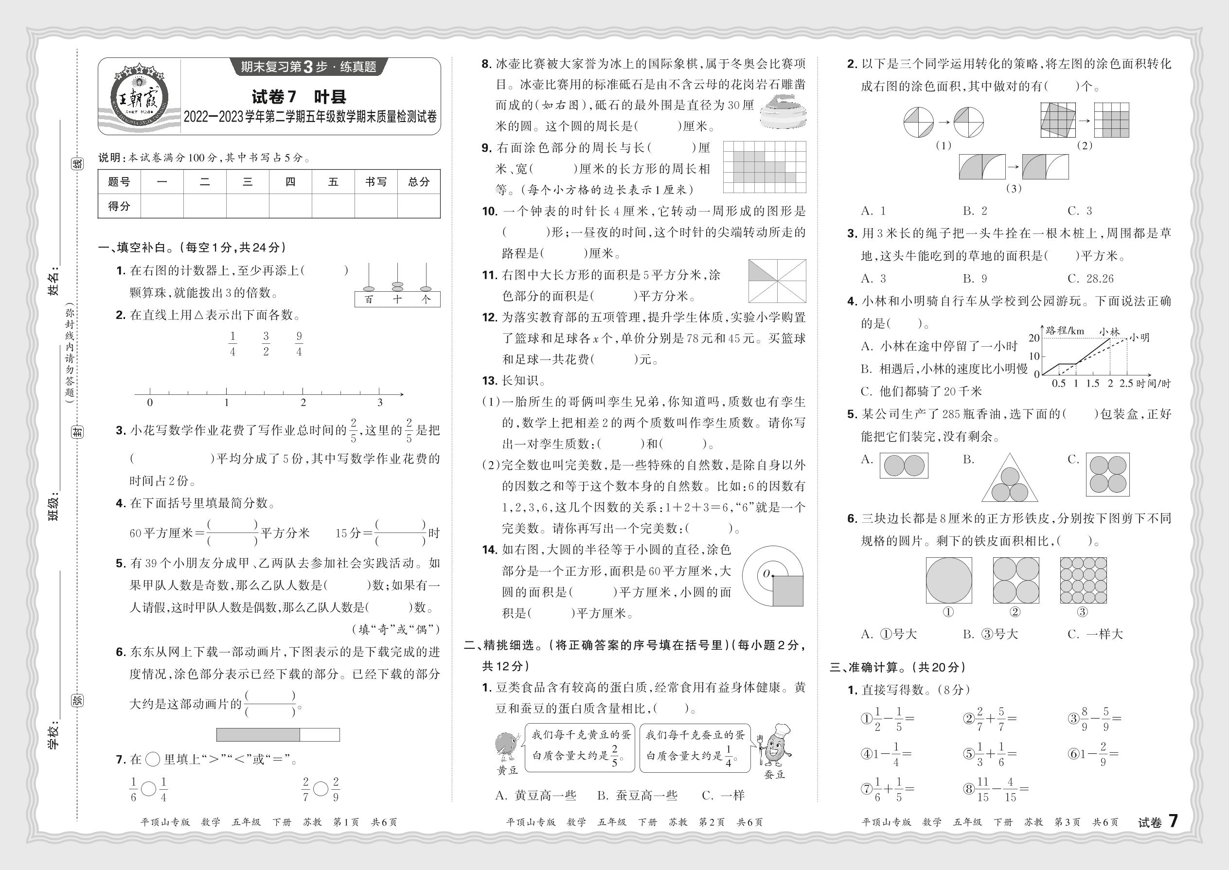 河南省平顶山市叶县2022-2023学年第二学期五年级数学期末质量检测试卷(苏教版)【7】