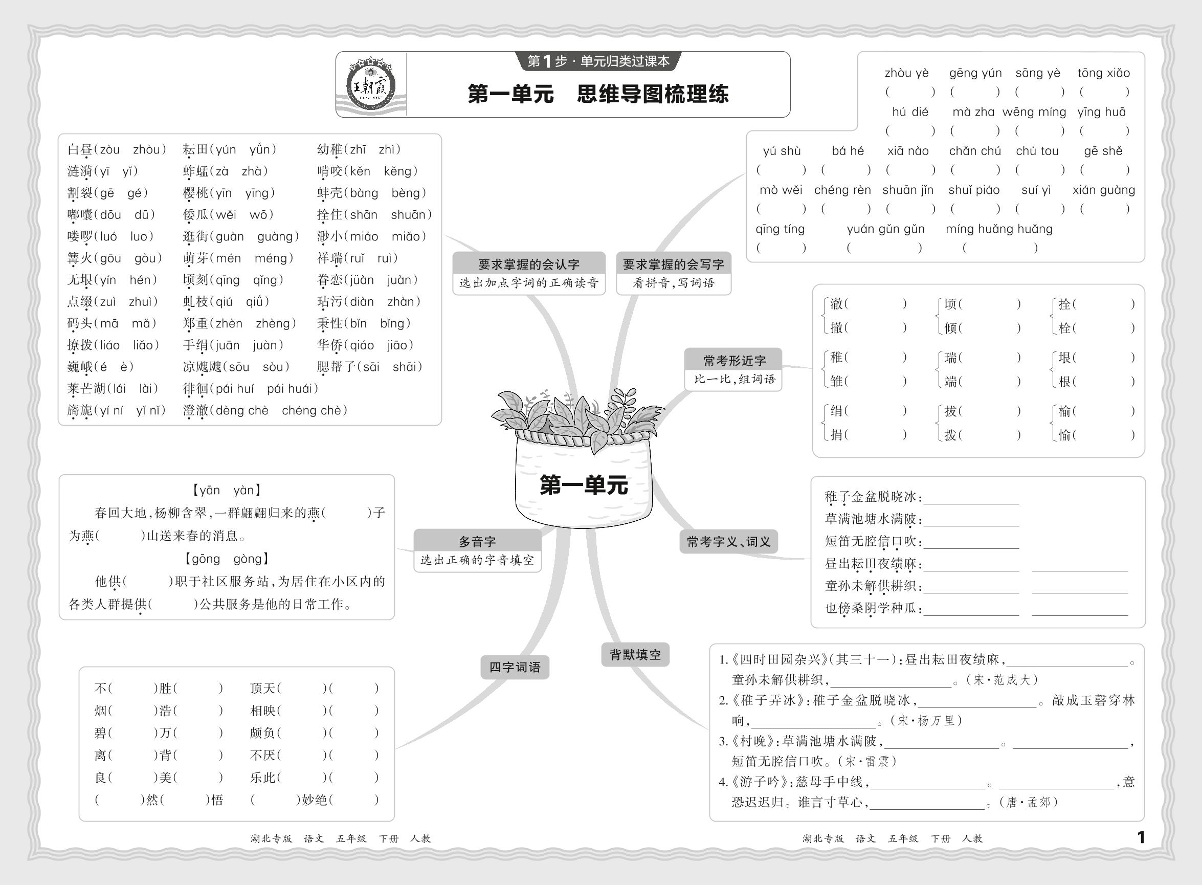2024春下册五年级语文人教版 期末过课本湖北版·第一单元 基础知识梳理练