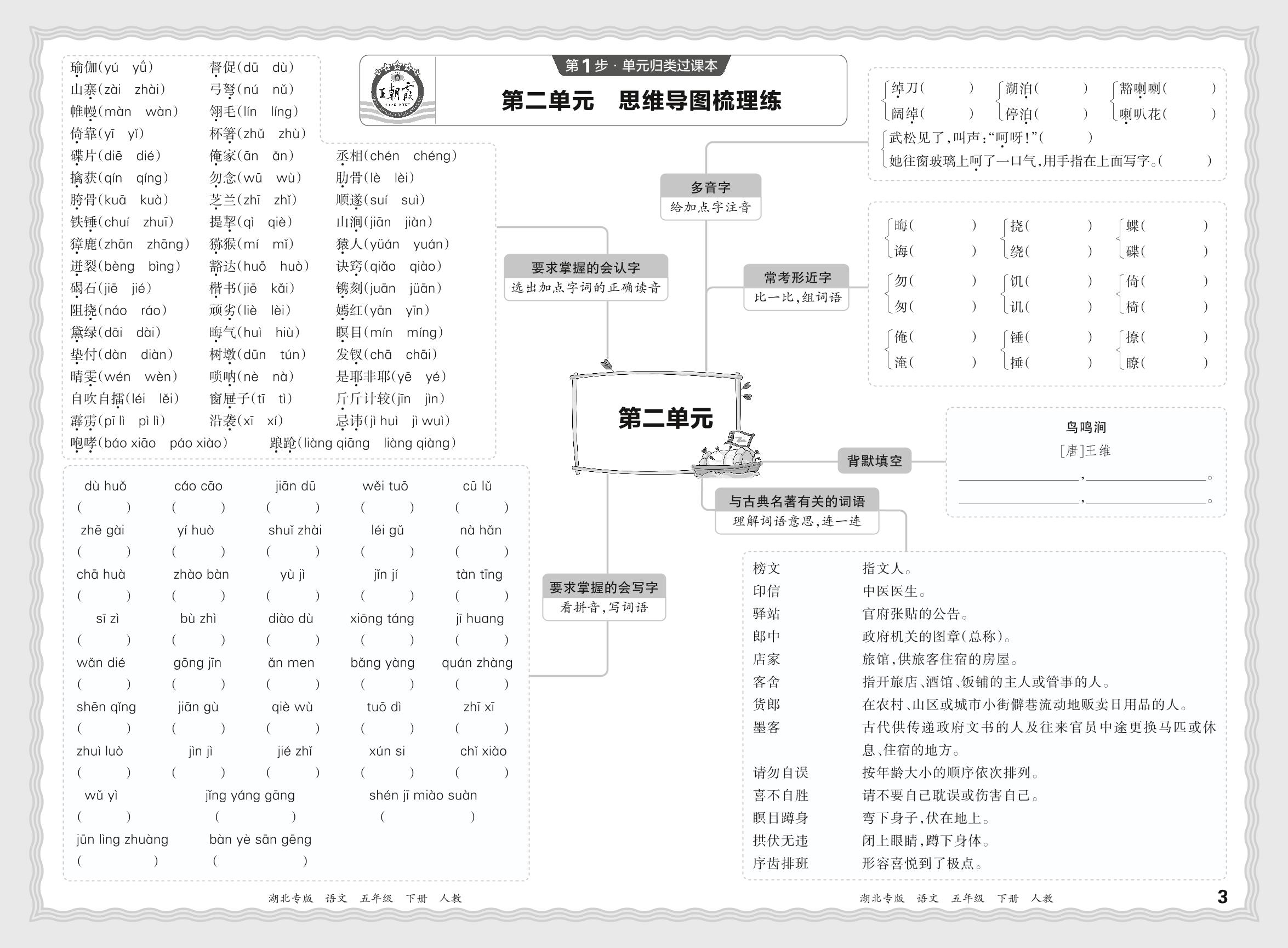 2024春下册五年级语文人教版 期末过课本湖北版·第二单元 基础知识梳理练