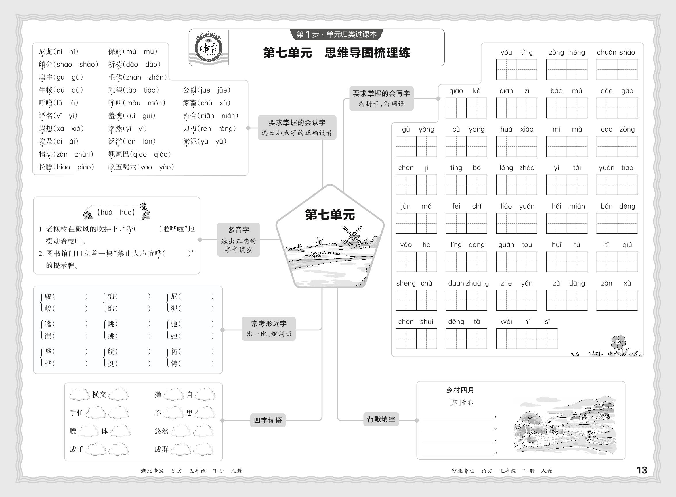 2024春下册五年级语文人教版 期末过课本湖北版·第七单元 基础知识梳理练