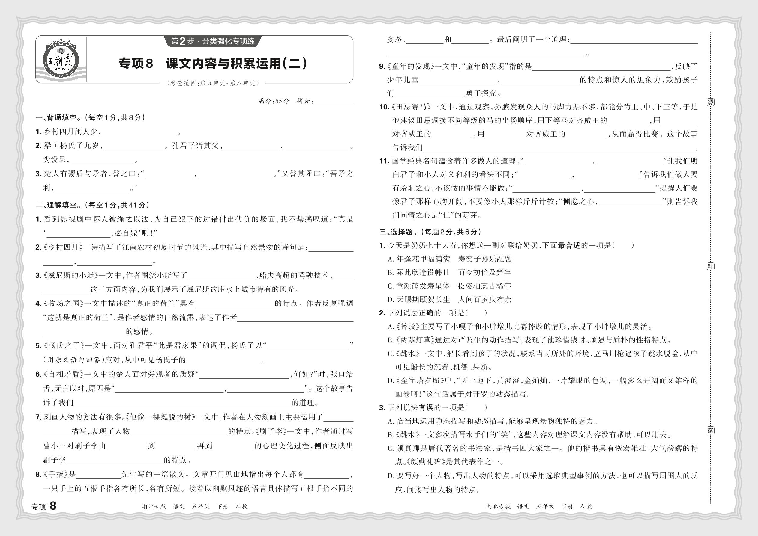 2024春下册五年级语文人教版 期末专项卷湖北版·课文内容与积累运用(二)【8】