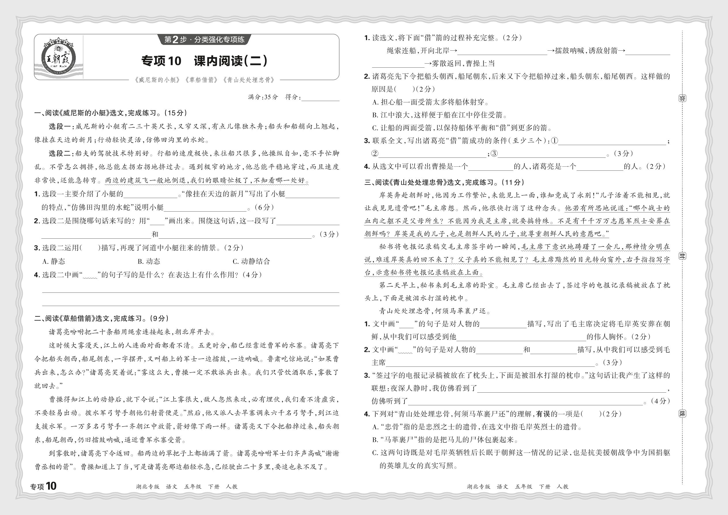 2024春下册五年级语文人教版 期末专项卷湖北版·课内阅读(二)【10】
