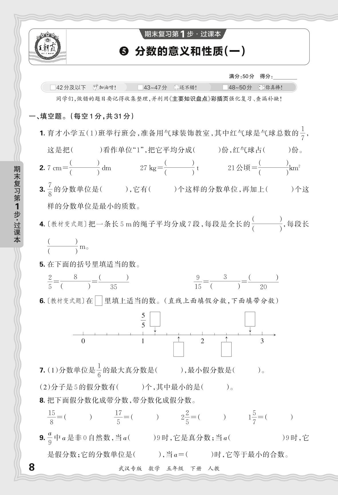 2024春下册五年级数学人教版 期末过课本武汉版·分数的意义和性质(一)【5】