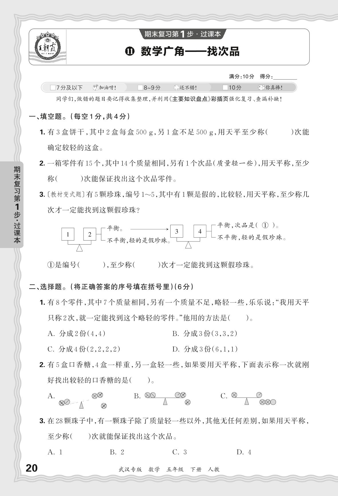 2024春下册五年级数学人教版 期末过课本武汉版·数学广角——找次品【11】