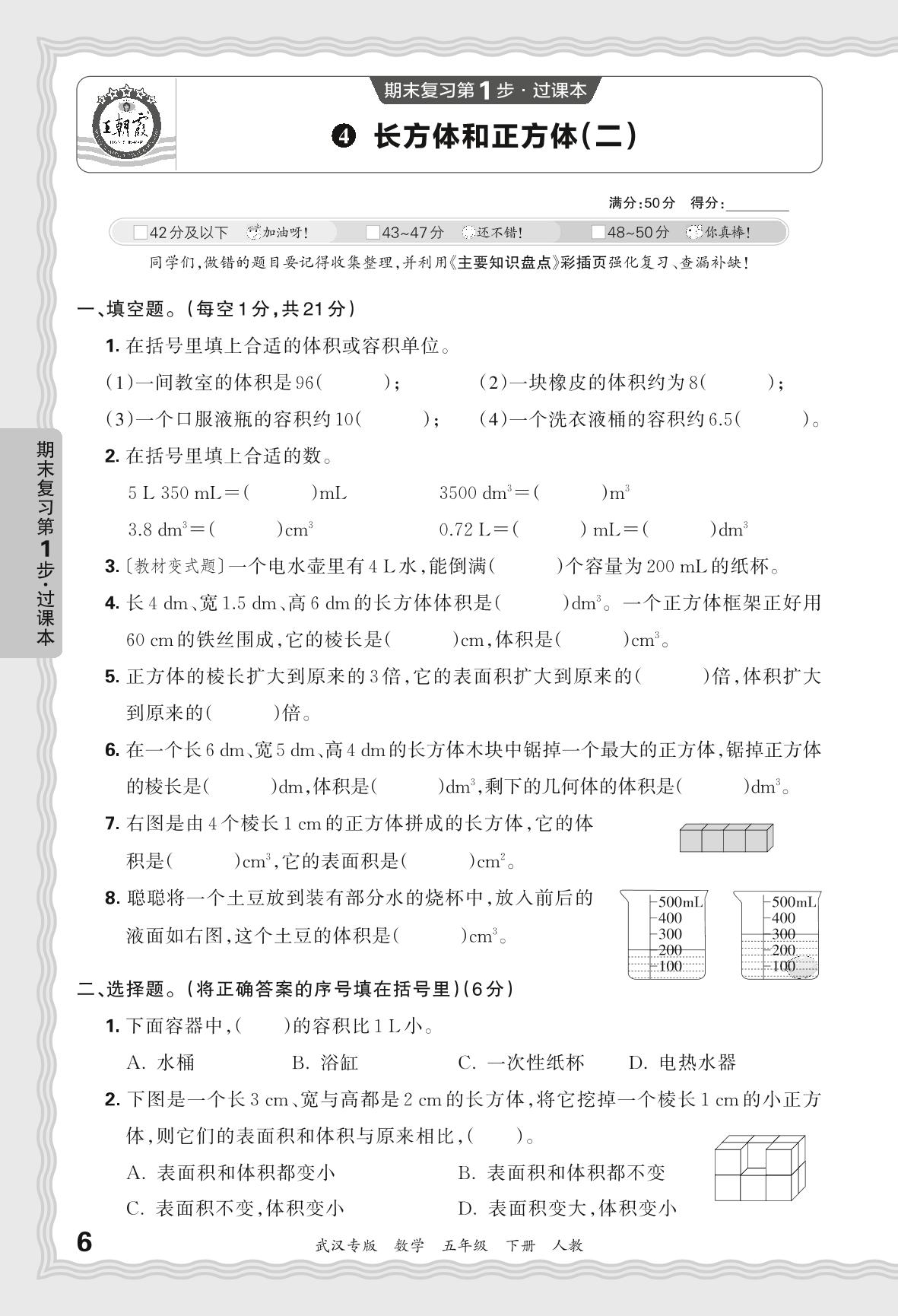 2024春下册五年级数学人教版 期末过课本武汉版·长方体和正方体(二)【4】