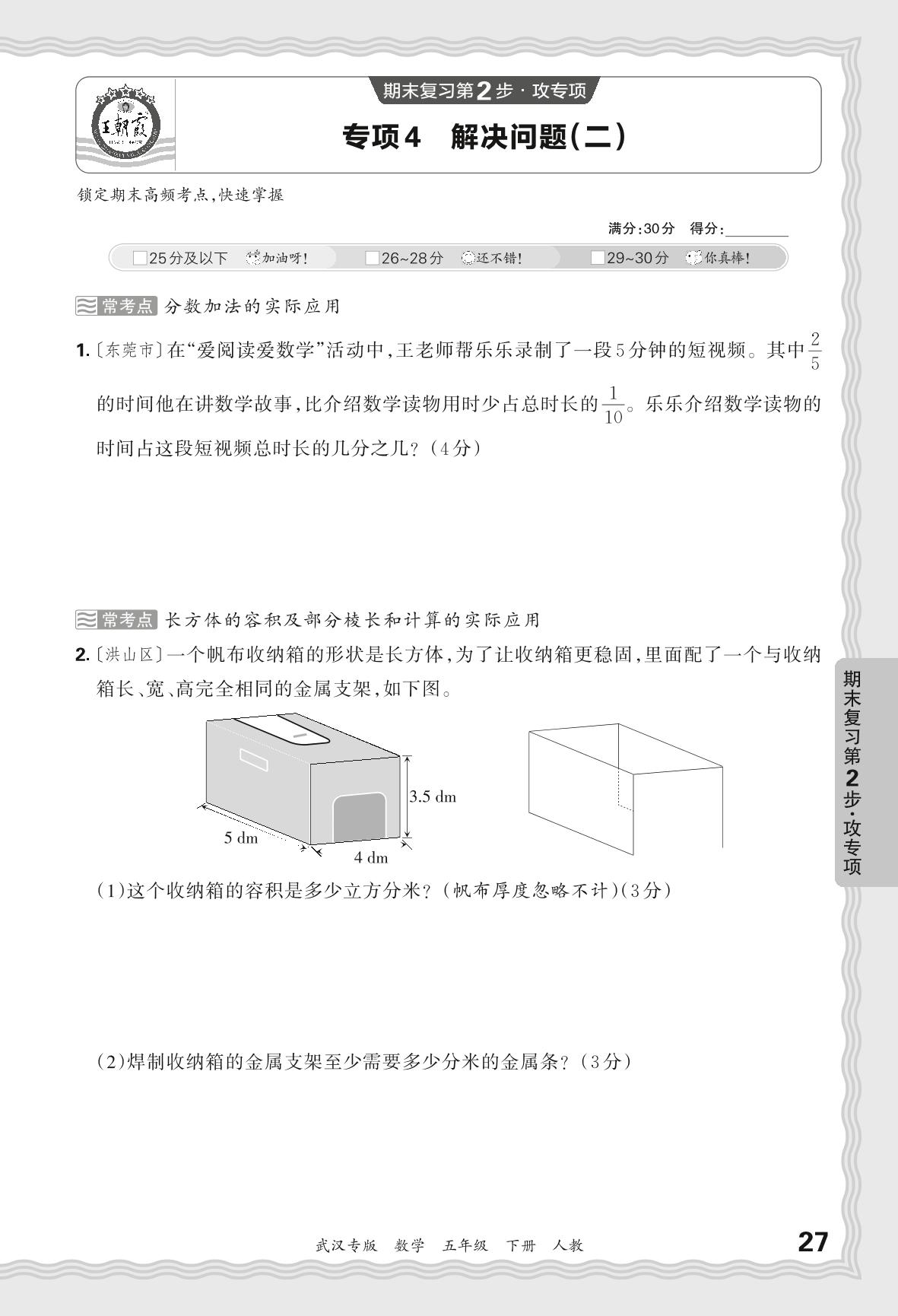 2024春下册五年级数学人教版 期末专项卷武汉版·解决问题(二)【4】