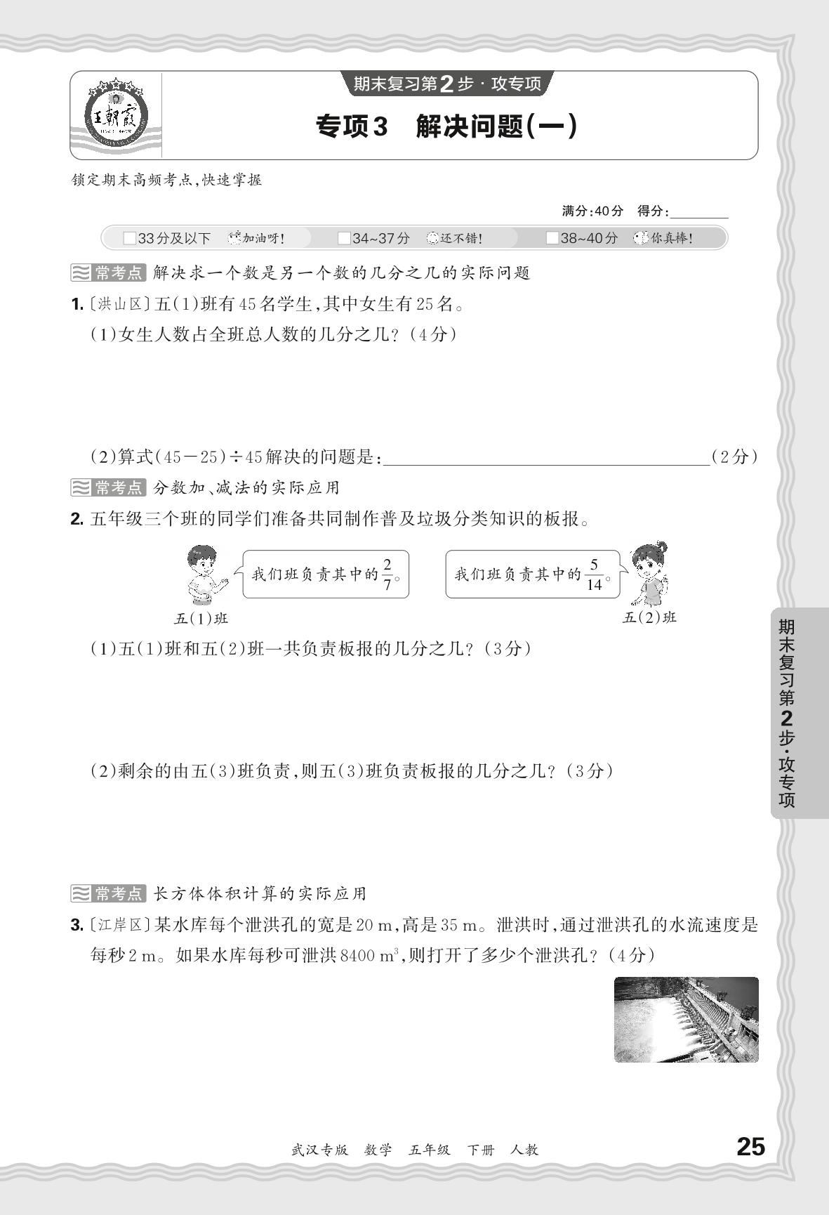 2024春下册五年级数学人教版 期末专项卷武汉版·解决问题(一)【3】