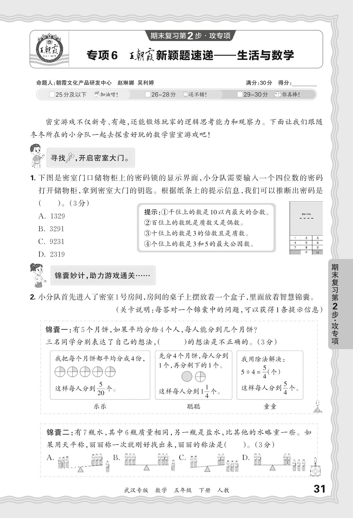 2024春下册五年级数学人教版 期末专项卷武汉版·王朝霞新颖题速递——生活与数学【6】