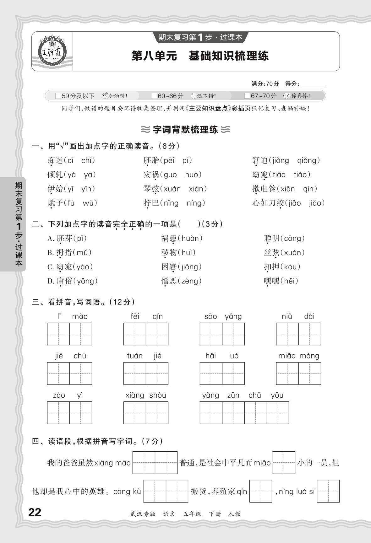 2024春下册五年级语文人教版 期末过课本武汉版·第八单元基础知识梳理练