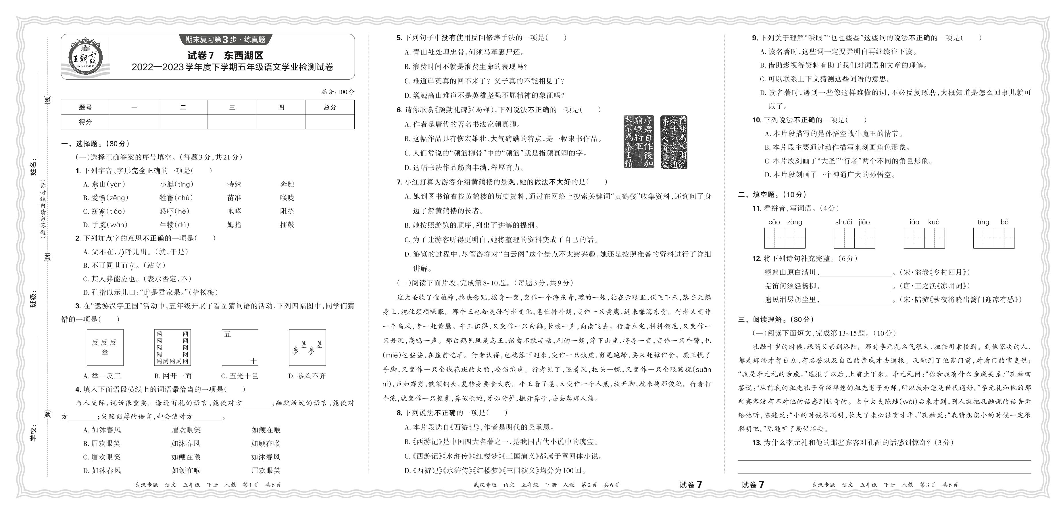 湖北省武汉市东西湖区2022—2023学年度下学期五年级语文学业检测试卷(人教版)【7】