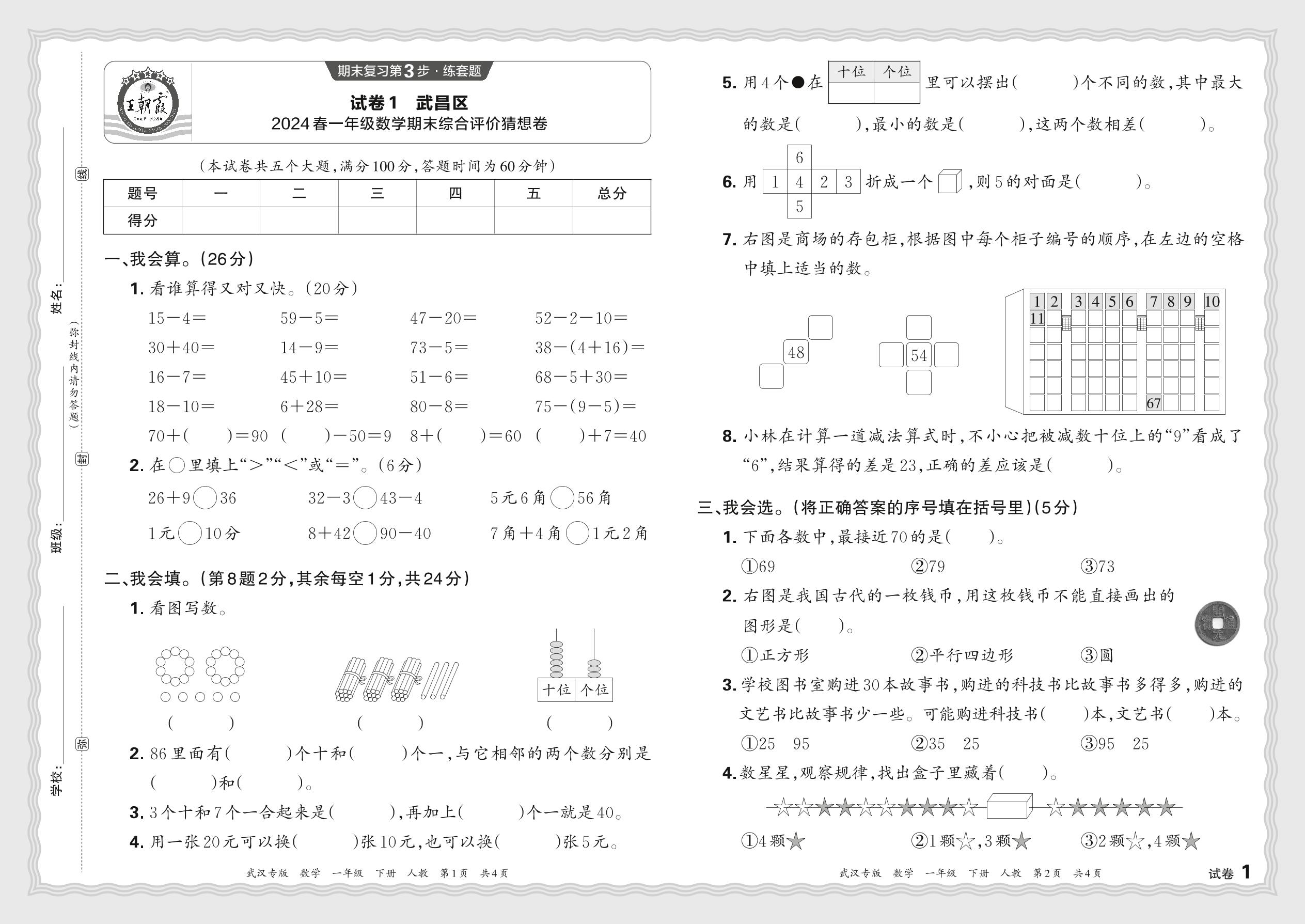 湖北省武汉市武昌区2024春一年级数学期末综合评价猜想卷(人教版)【1】