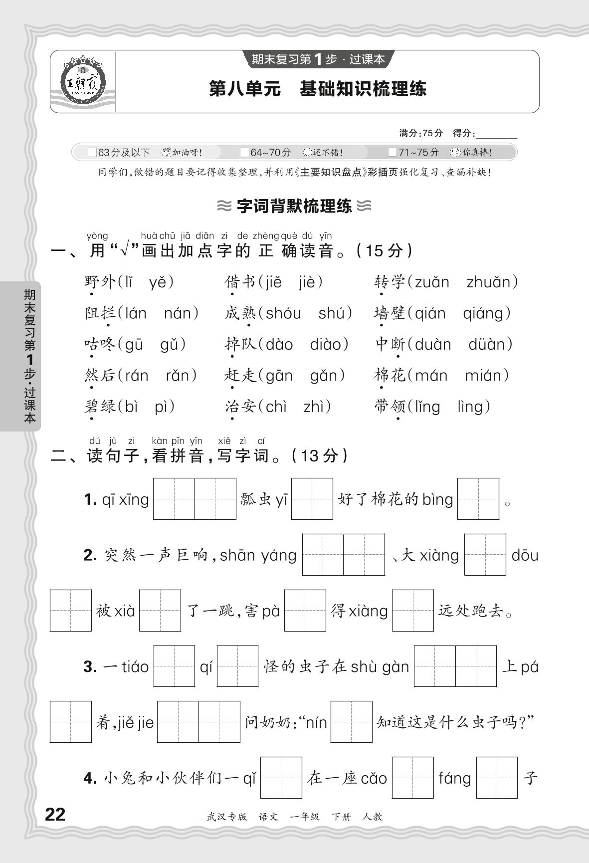 2024春下册一年级语文人教版 期末过课本武汉版·第八单元基础知识梳理练