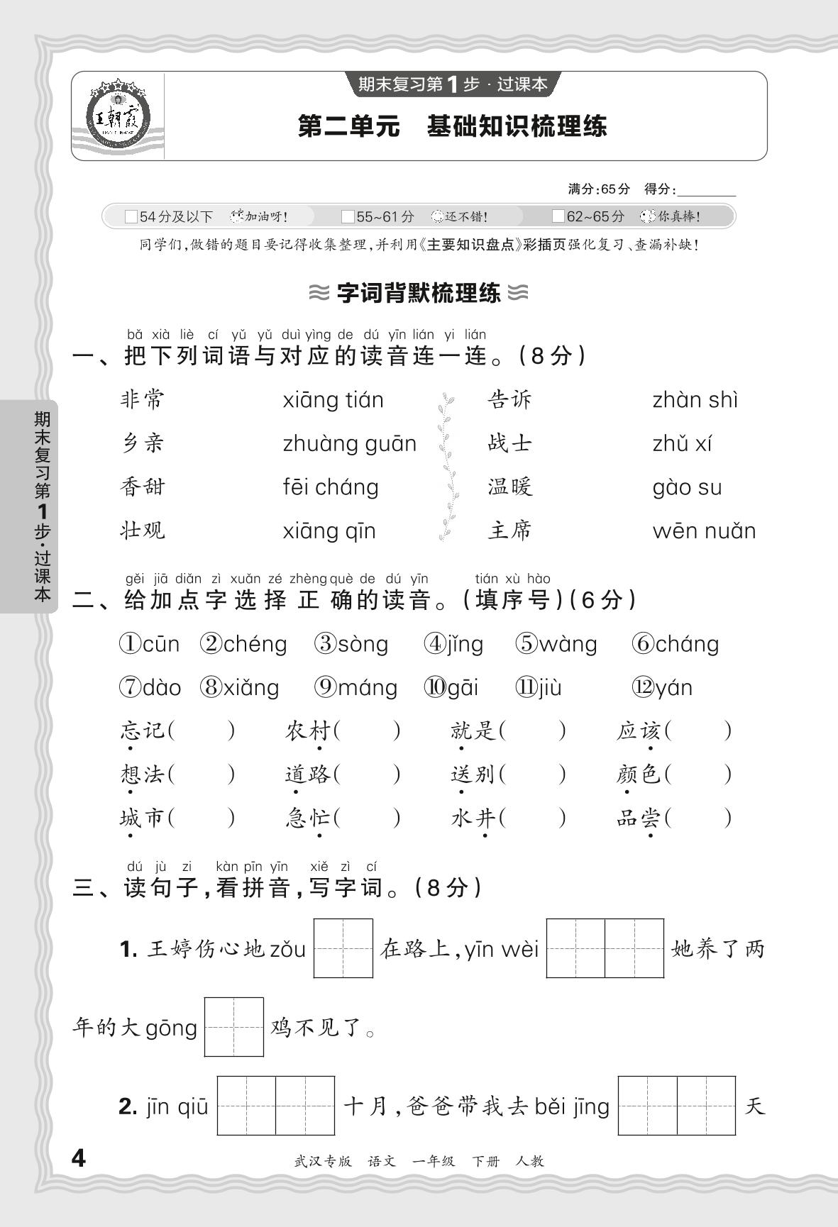 2024春下册一年级语文人教版 期末过课本武汉版·第二单元基础知识梳理练