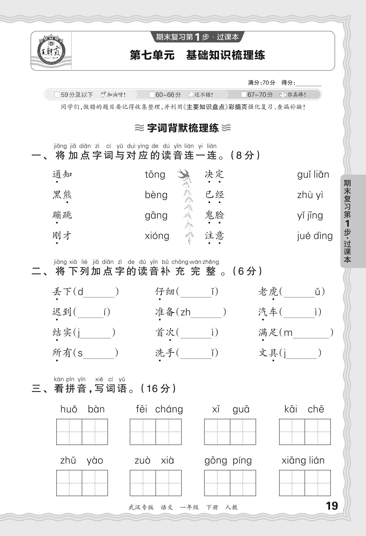 2024春下册一年级语文人教版 期末过课本武汉版·第七单元基础知识梳理练