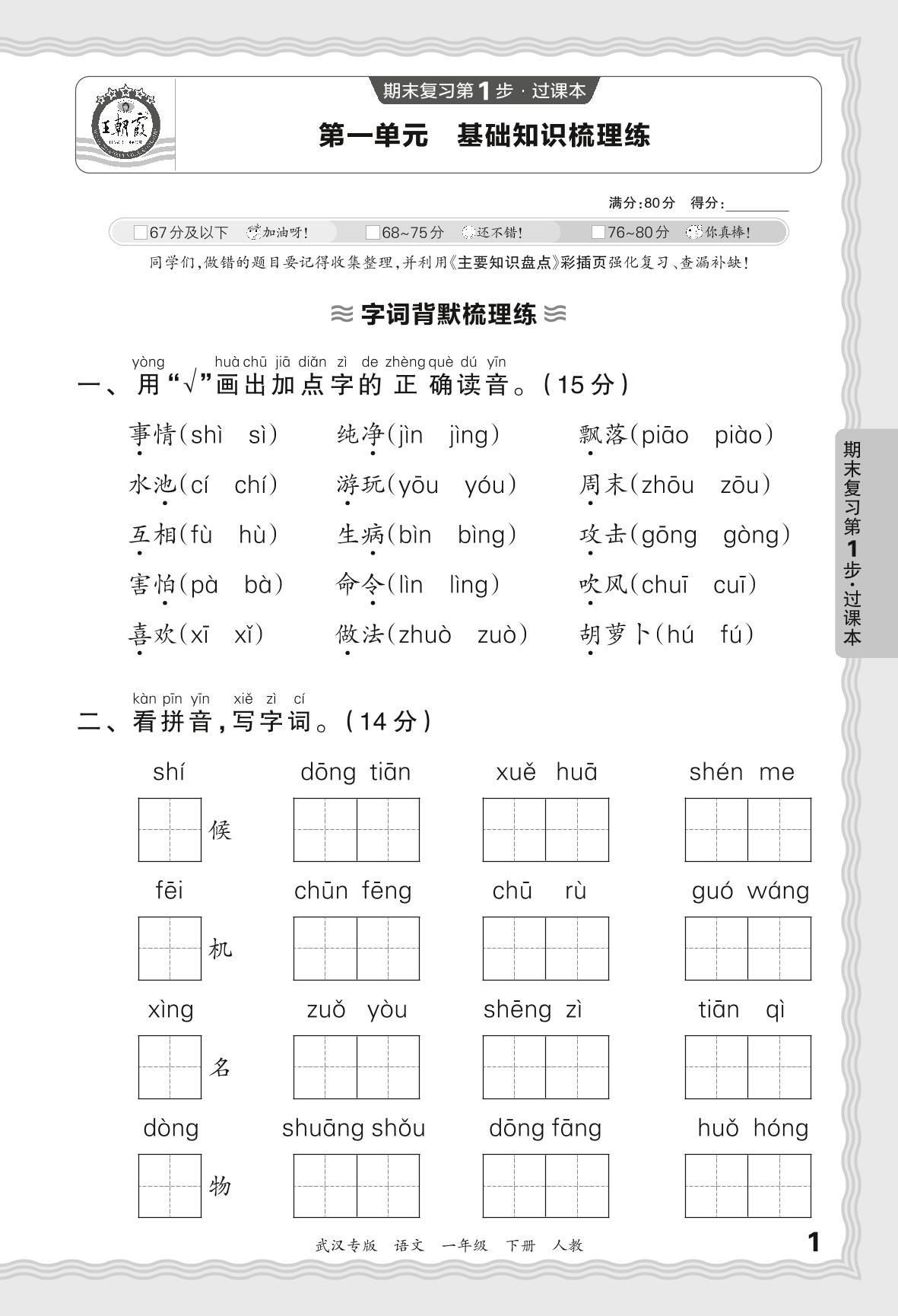 2024春下册一年级语文人教版 期末过课本武汉版·第一单元基础知识梳理练