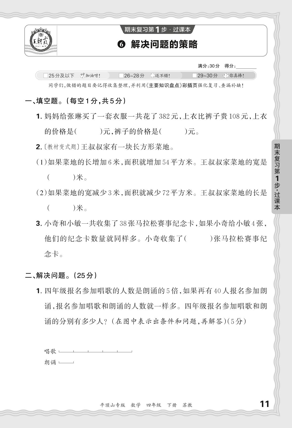 2024春下册四年级数学苏教版 期末过课本平顶山版·解决问题的策略【6】
