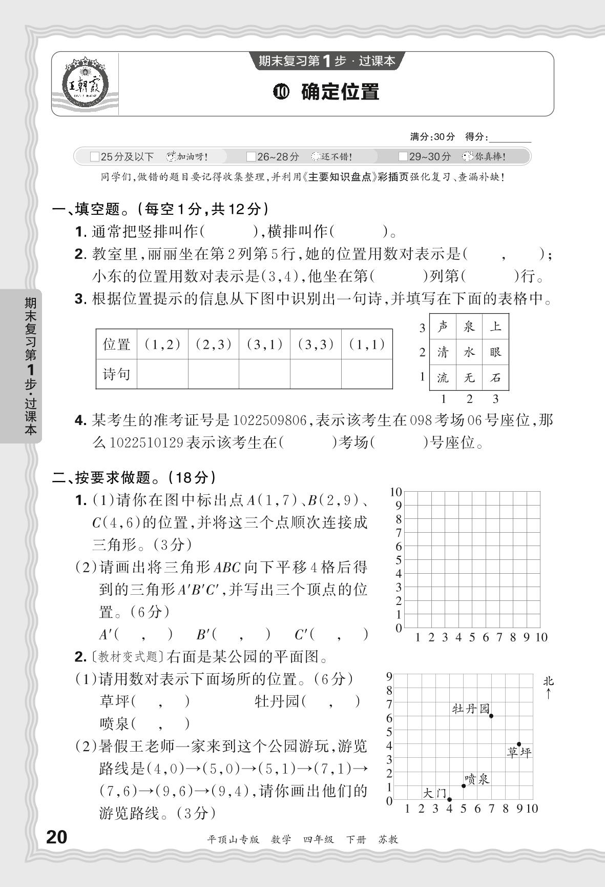 2024春下册四年级数学苏教版 期末过课本平顶山版·确定位置【10】