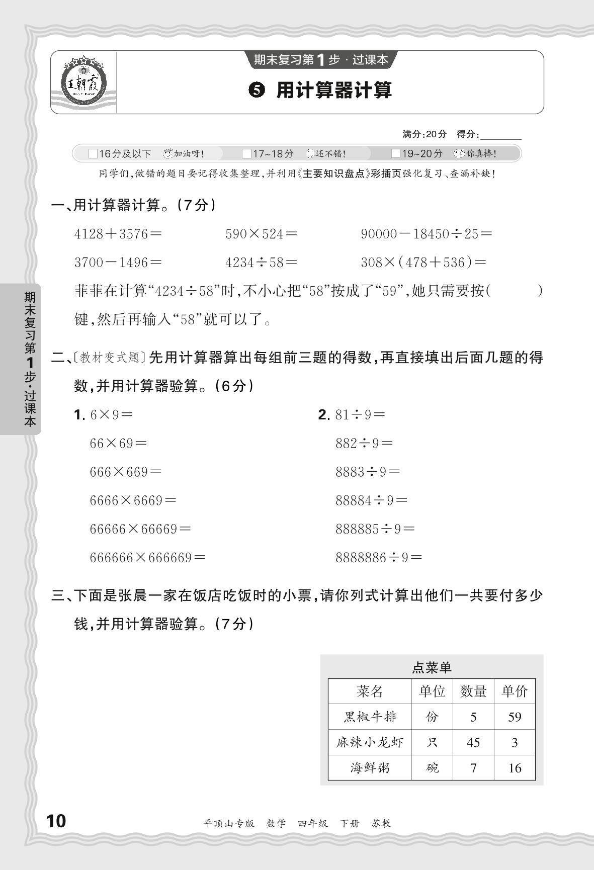 2024春下册四年级数学苏教版 期末过课本平顶山版·用计算器计算【5】