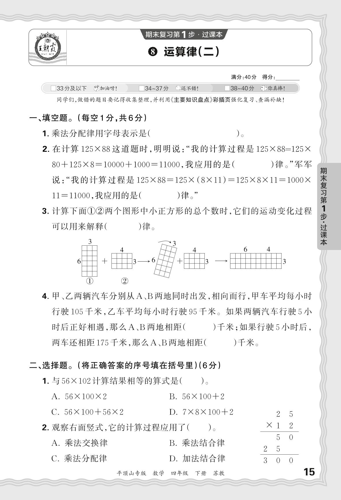 2024春下册四年级数学苏教版 期末过课本平顶山版·运算律(二)【8】