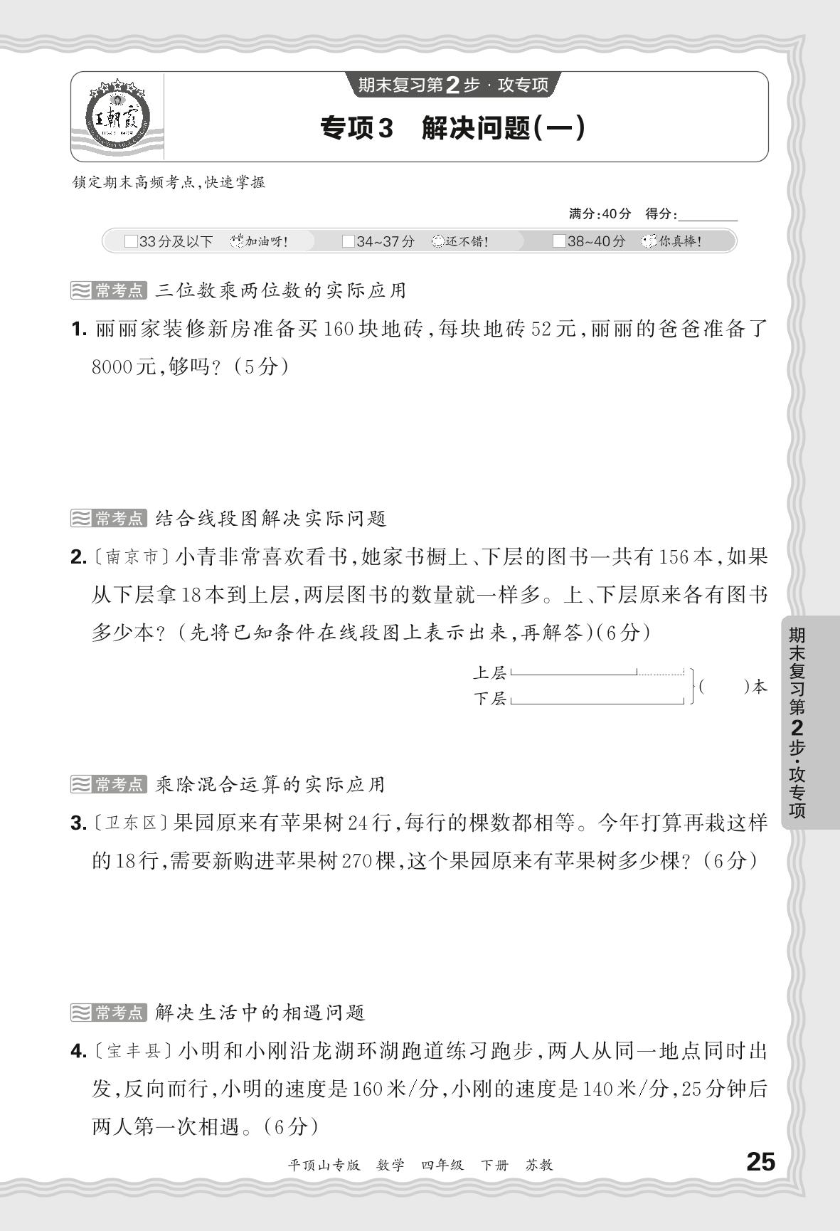 2024春下册四年级数学苏教版 期末专项卷平顶山版·解决问题(一)【3】
