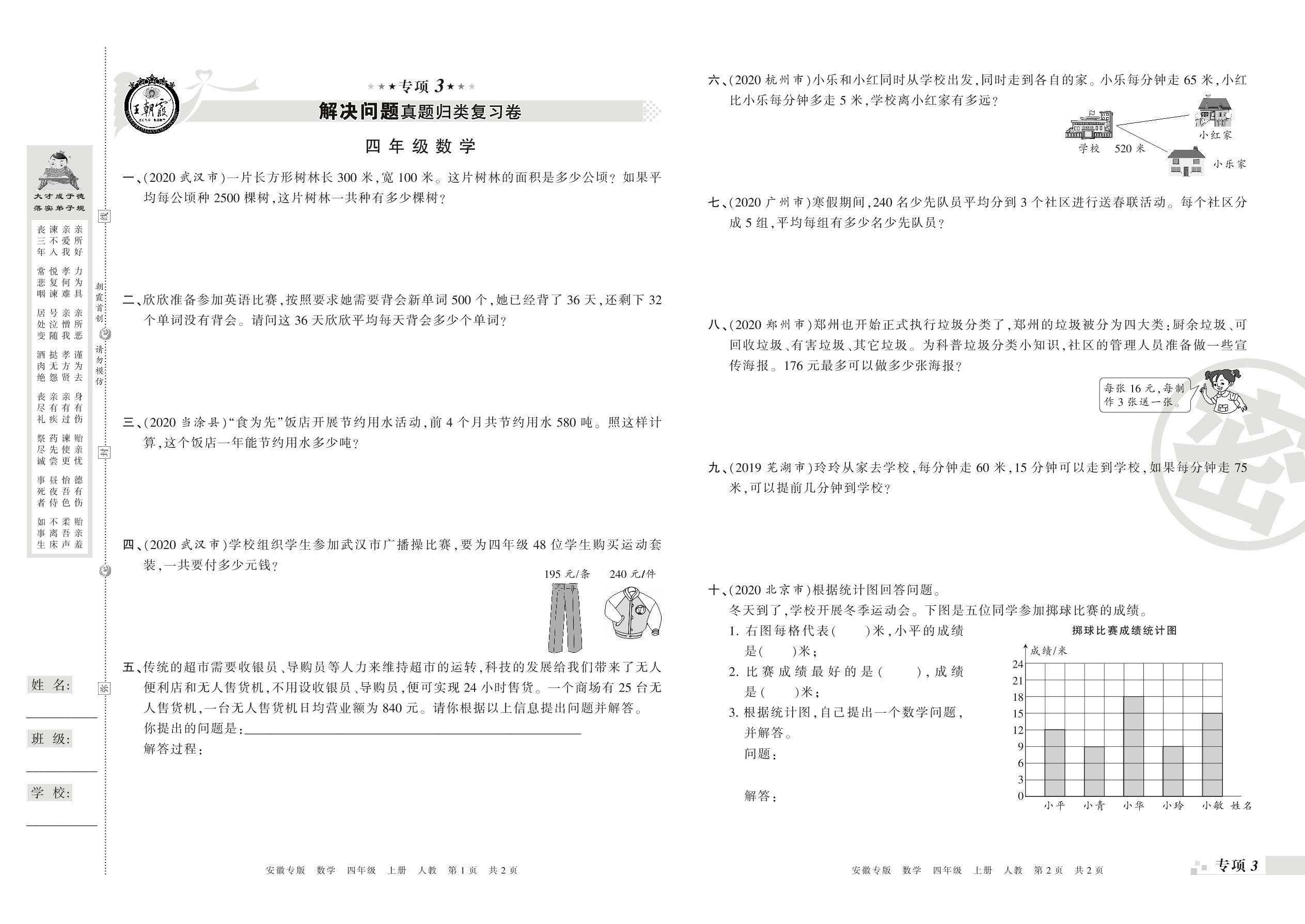王朝霞期末专项卷——解决问题真题归类复习、新颖题速递:生活与数学四年级上册数学(人教版)_R210804141402【0】