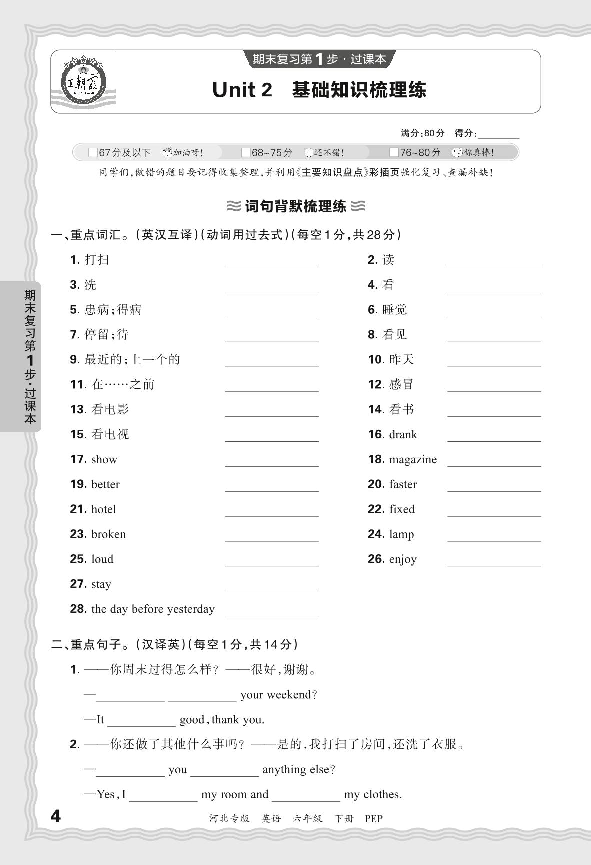 2024春下册六年级英语人教PEP版 期末过课本河北版·Unit 2 基础知识梳理练