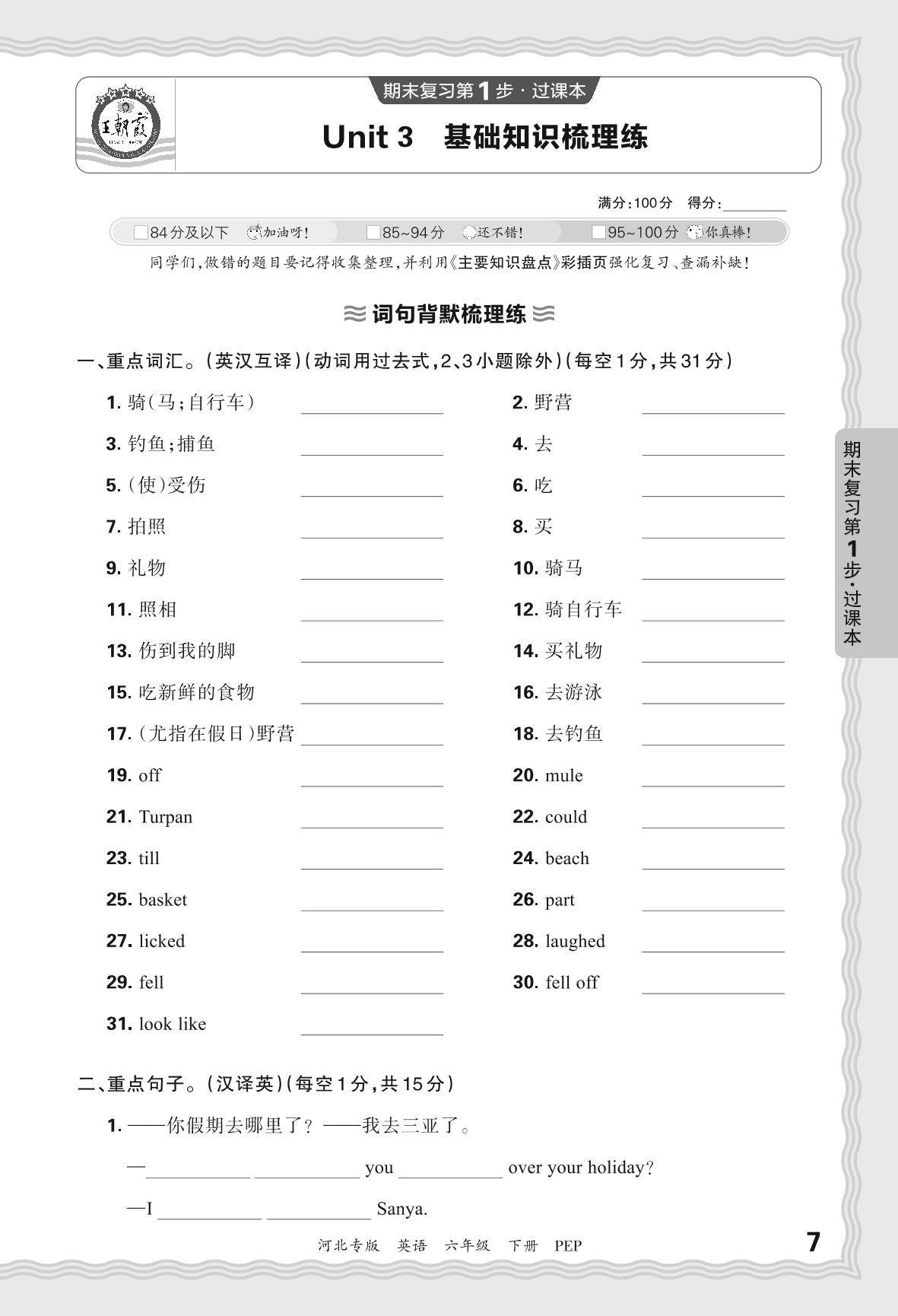 2024春下册六年级英语人教PEP版 期末过课本河北版·Unit 3 基础知识梳理练