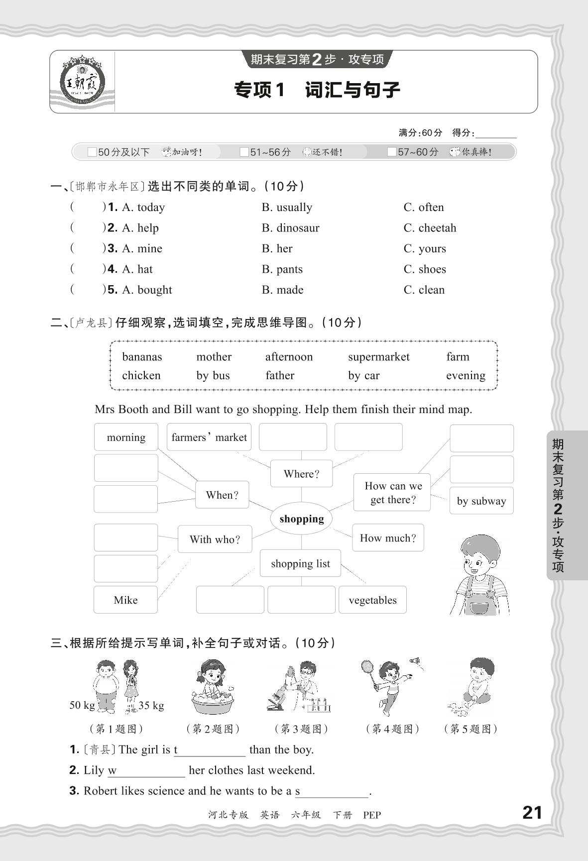 2024春下册六年级英语人教PEP版 期末专项卷河北版·词汇与句子【1】