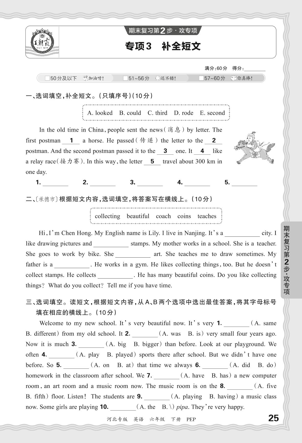 2024春下册六年级英语人教PEP版 期末专项卷河北版·补全短文【3】