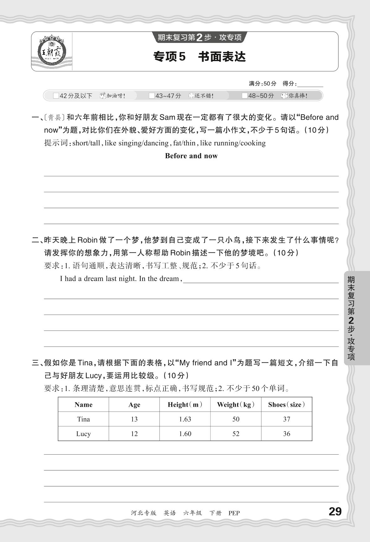 2024春下册六年级英语人教PEP版 期末专项卷河北版·书面表达【5】