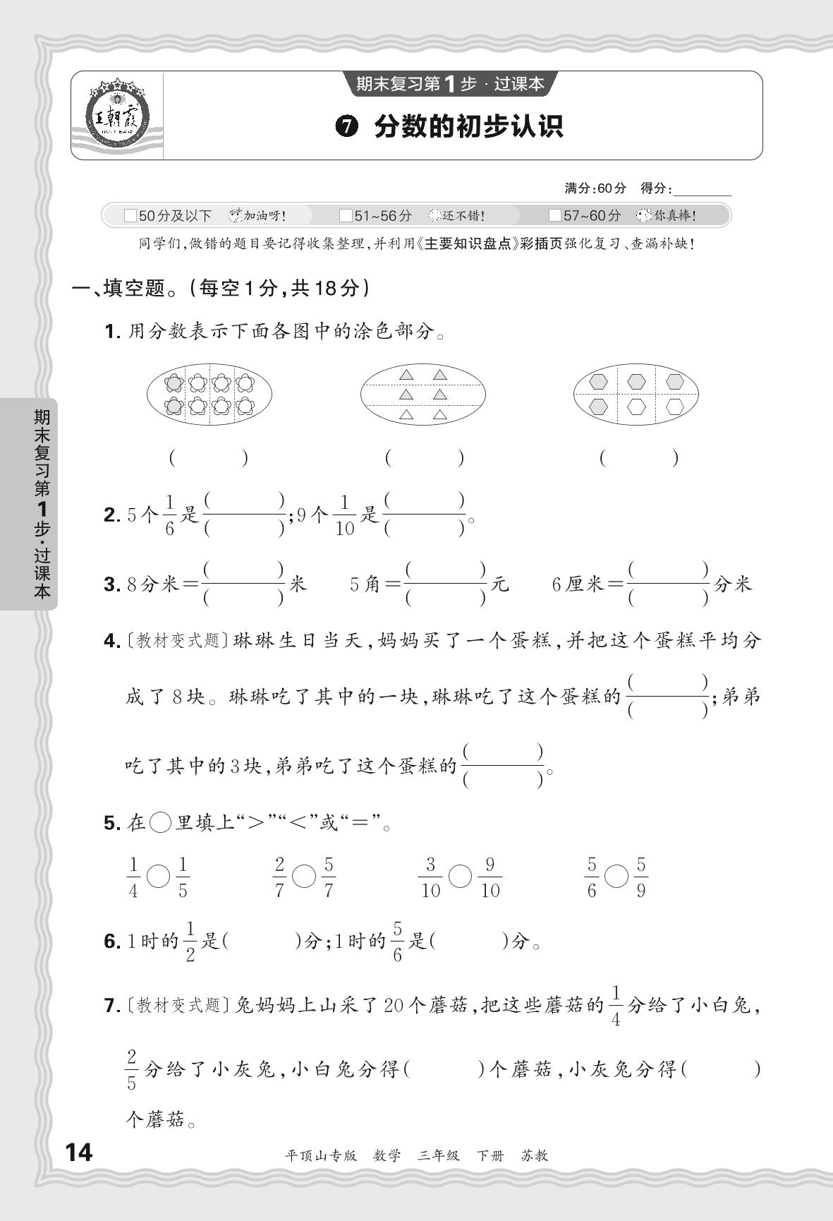2024春下册三年级数学苏教版 期末过课本平顶山版·分数的初步认识【7】