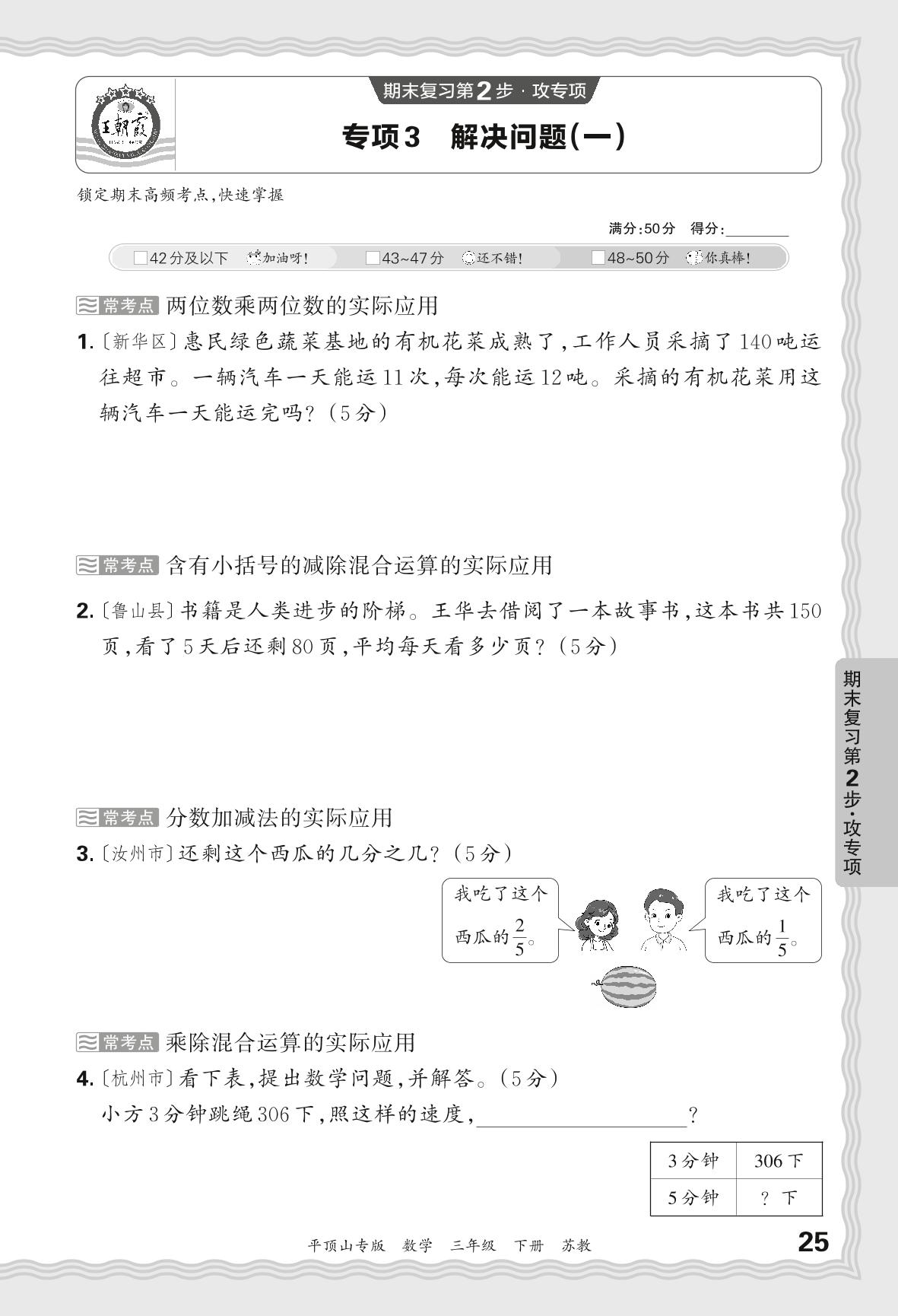 2024春下册三年级数学苏教版 期末专项卷平顶山版·解决问题(一)【3】