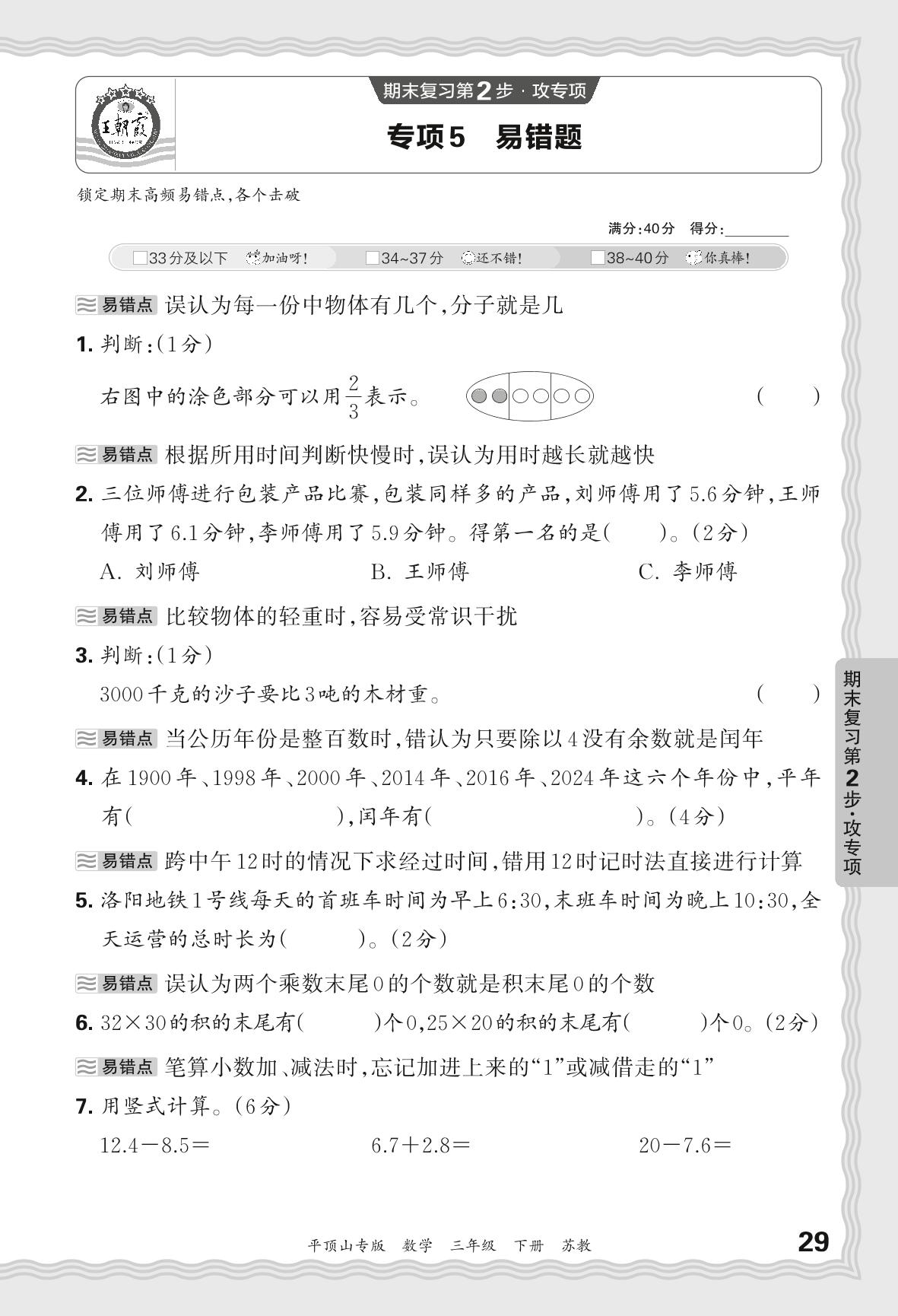 2024春下册三年级数学苏教版 期末专项卷平顶山版·易错题【5】