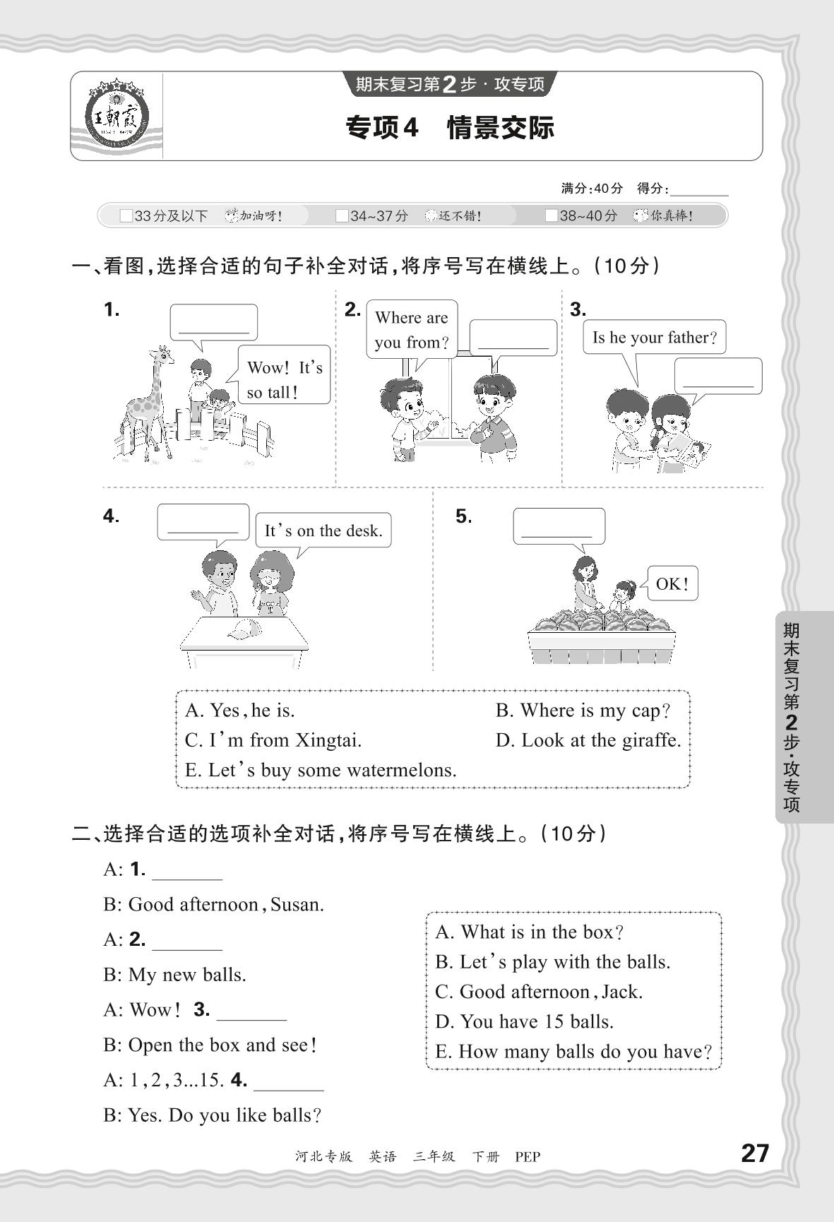 2024春下册三年级英语人教PEP版 期末专项卷河北版·情景交际【4】