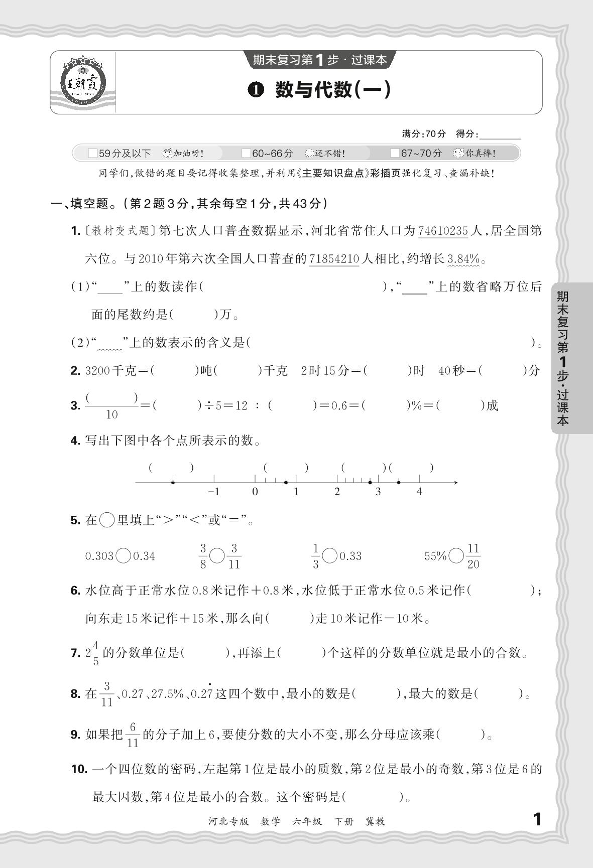 2024春下册六年级数学冀教版 期末过课本河北版·数与代数(一)