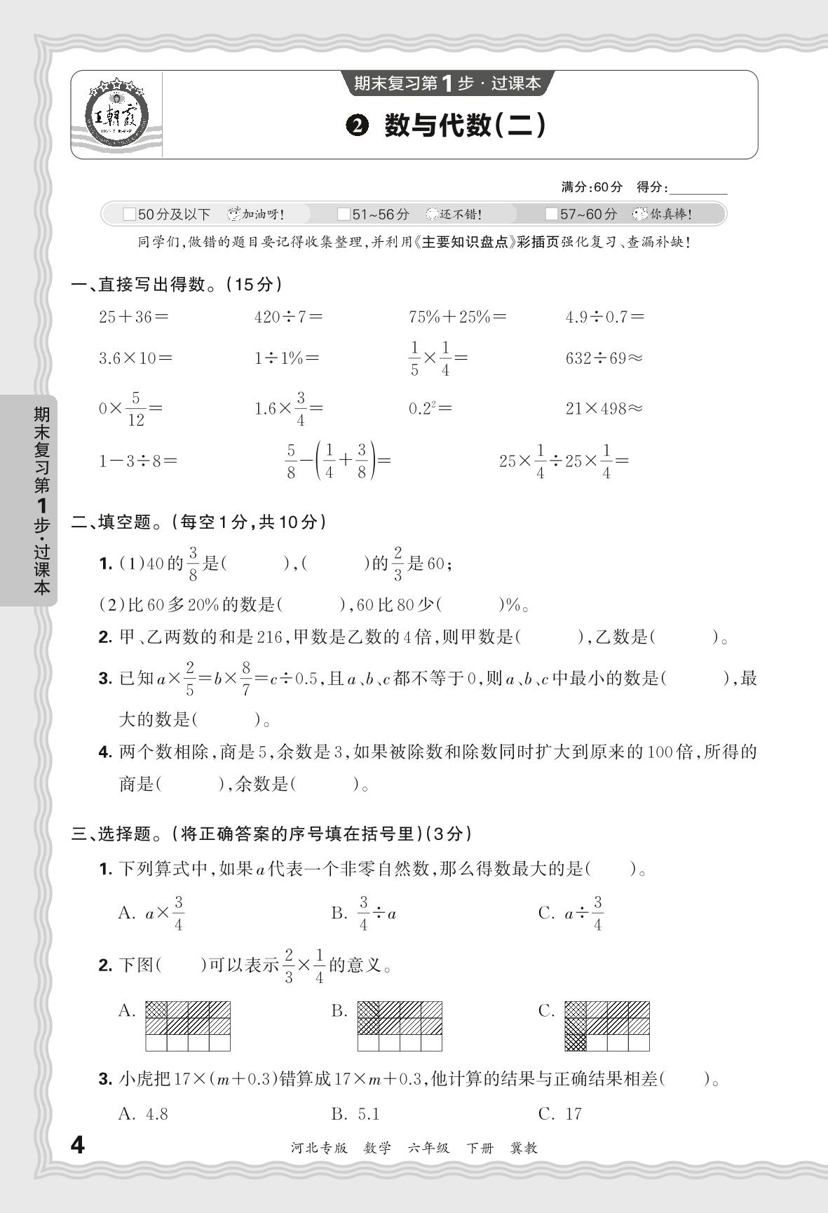 2024春下册六年级数学冀教版 期末过课本河北版·数与代数(二)