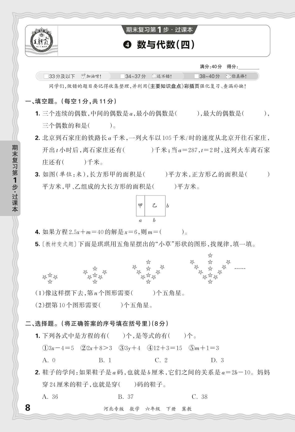 2024春下册六年级数学冀教版 期末过课本河北版·数与代数(四)