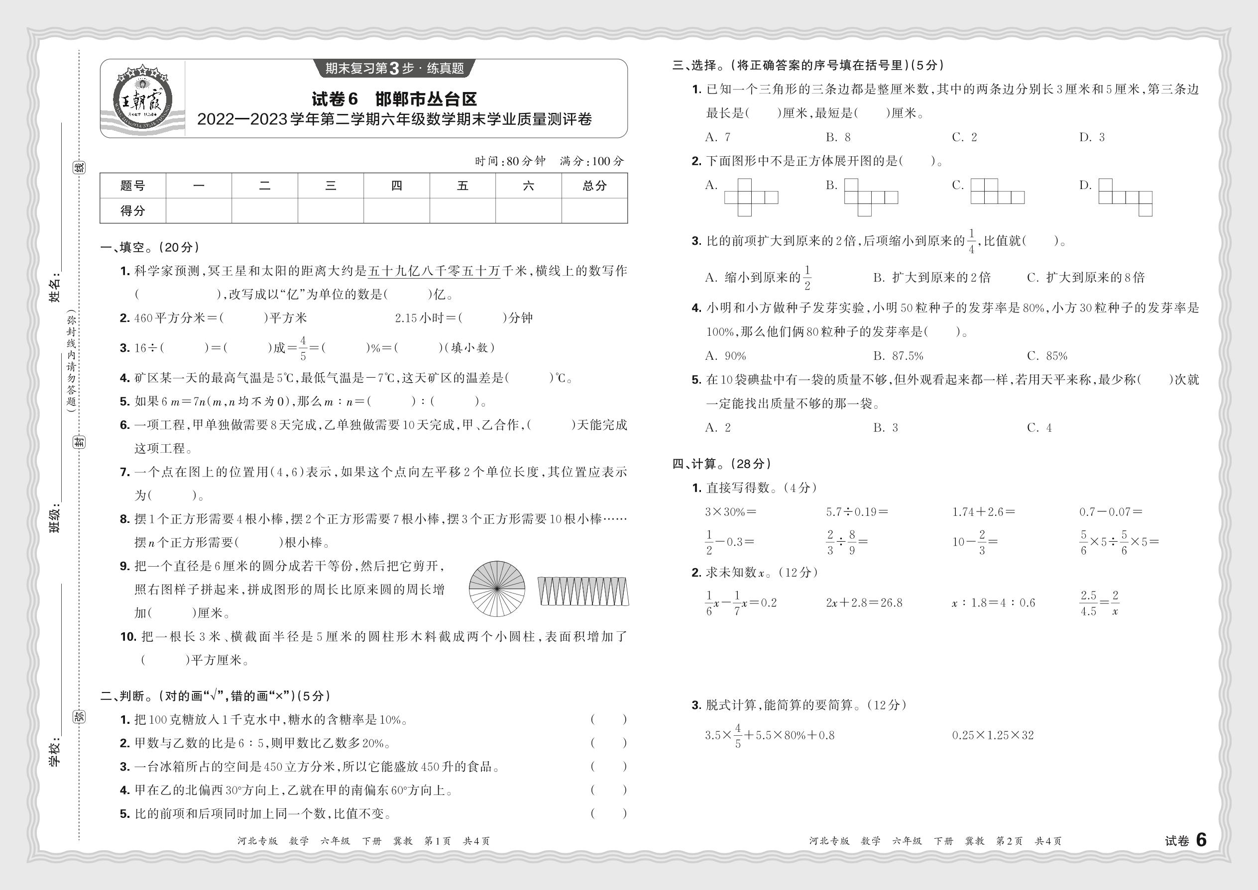 河北省邯郸市丛台区2022—2023学年第二学期六年级数学期末学业质量测评卷(冀教版)【6】