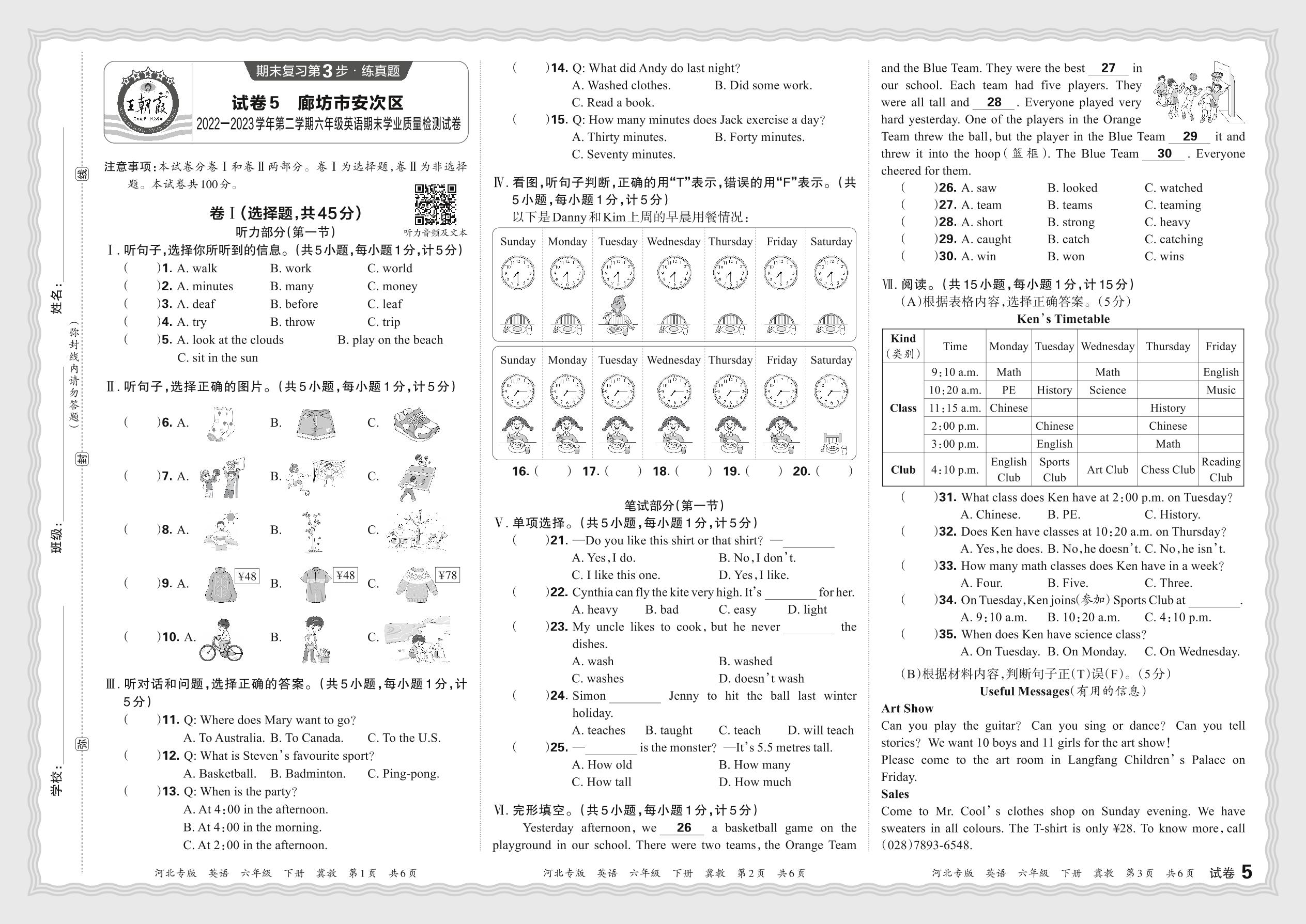河北省廊坊市安次区2022—2023学年第二学期六年级英语期末学业质量检测试卷(冀教版)【5】
