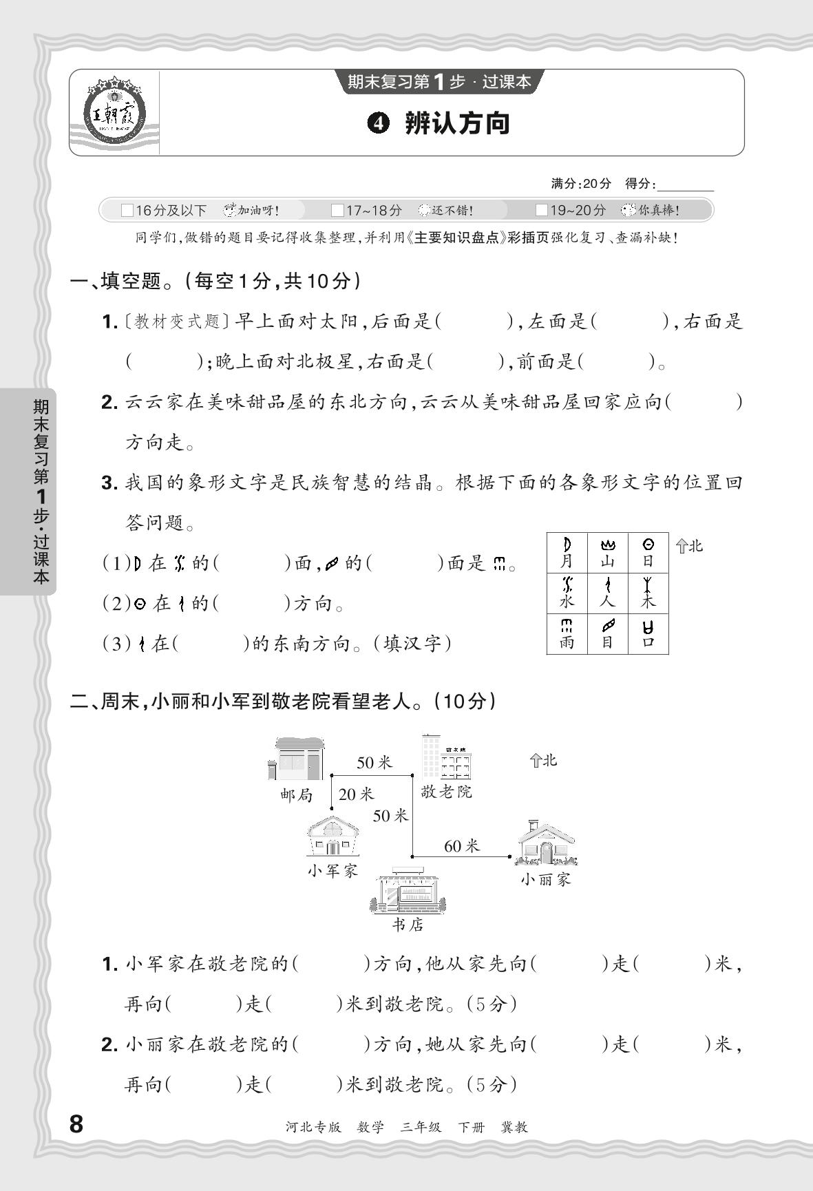 2024春下册三年级数学冀教版 期末过课本河北版·辨认方向【4】
