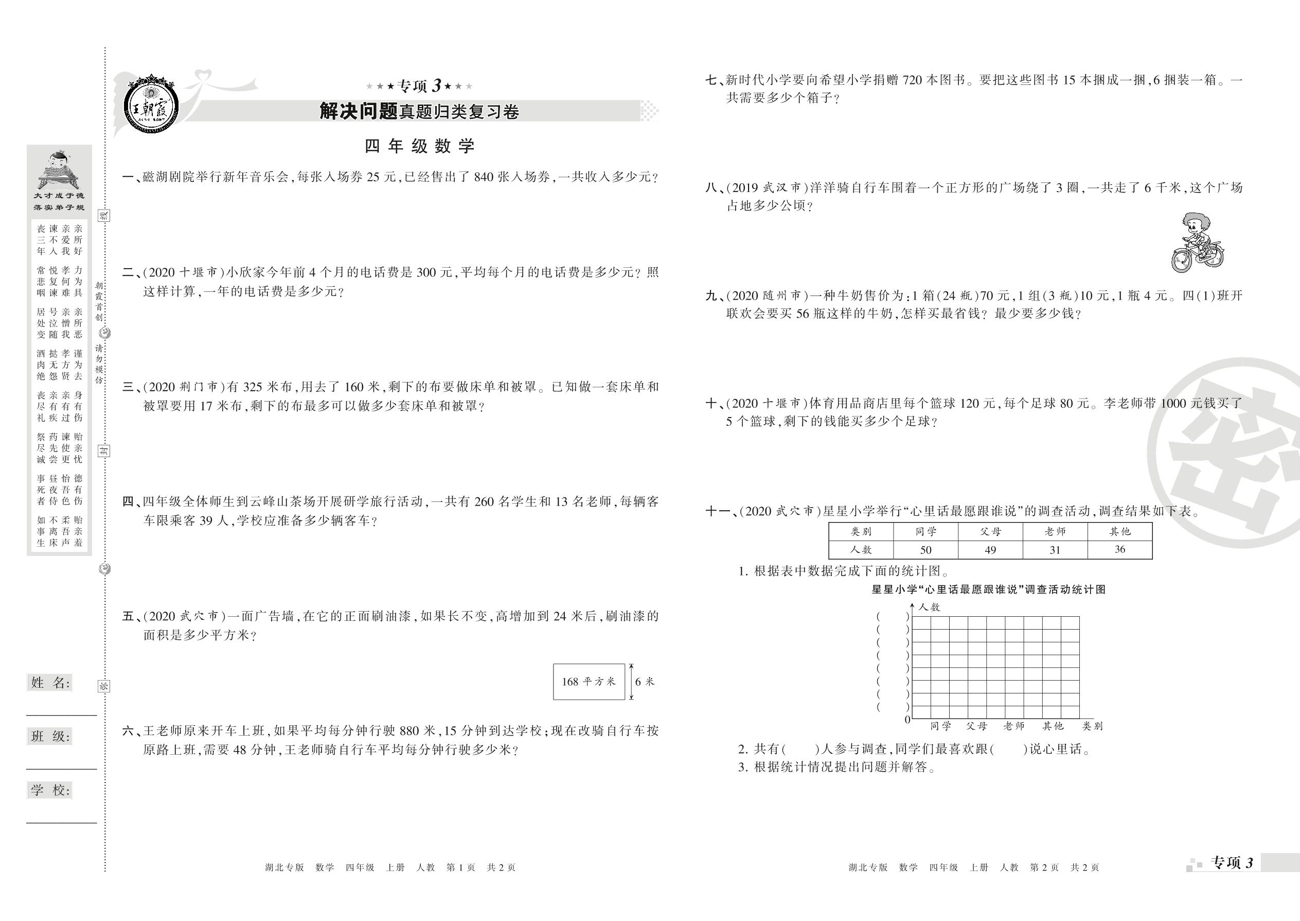 王朝霞期末专项卷——解决问题真题归类复习、新颖题速递:生活与数学四年级上册数学(人教版)_R210804141453【0】
