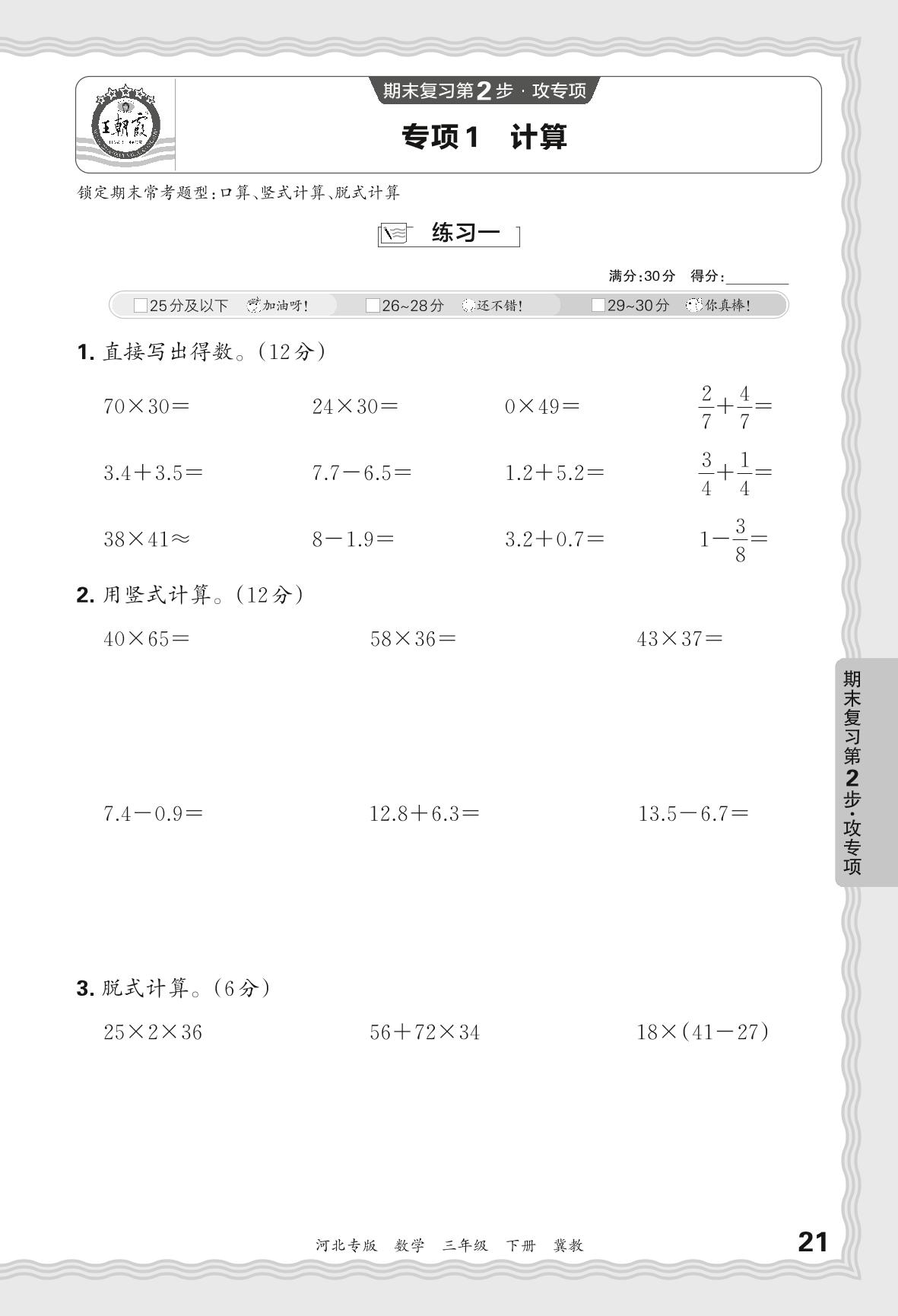 2024春下册三年级数学冀教版 期末专项卷河北版·计算【1】
