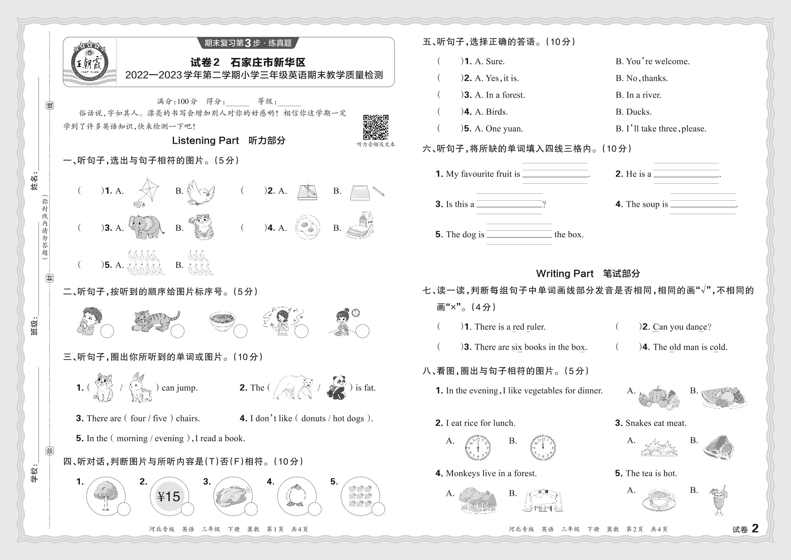 河北省石家庄市新华区2022—2023学年第二学期小学三年级英语期末教学质量检测(冀教版)【2】